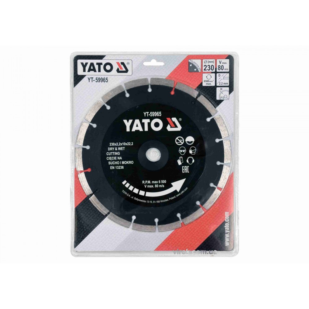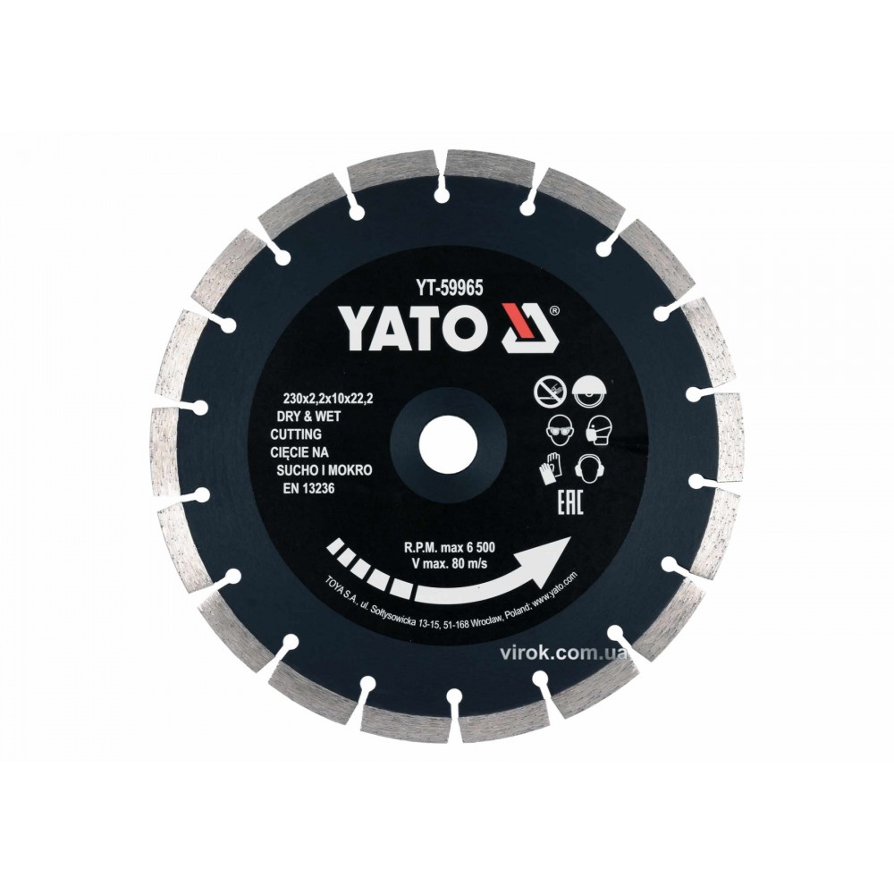 Диск відрізний алмазний по каменю і бетону для мокрої та сухої різки YATO 230 x 2.2 x 10 x 22.2 мм