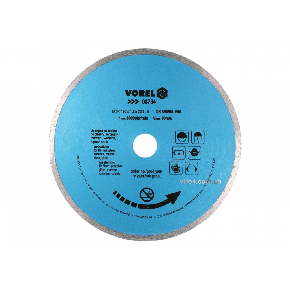 Диск відрізний VOREL, алмазний Ø=180мм [15/60]