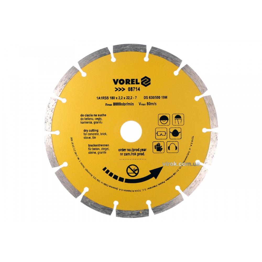 Диск відрізний VOREL, алмазний "SEGMENT" Ø=180мм [15/60]