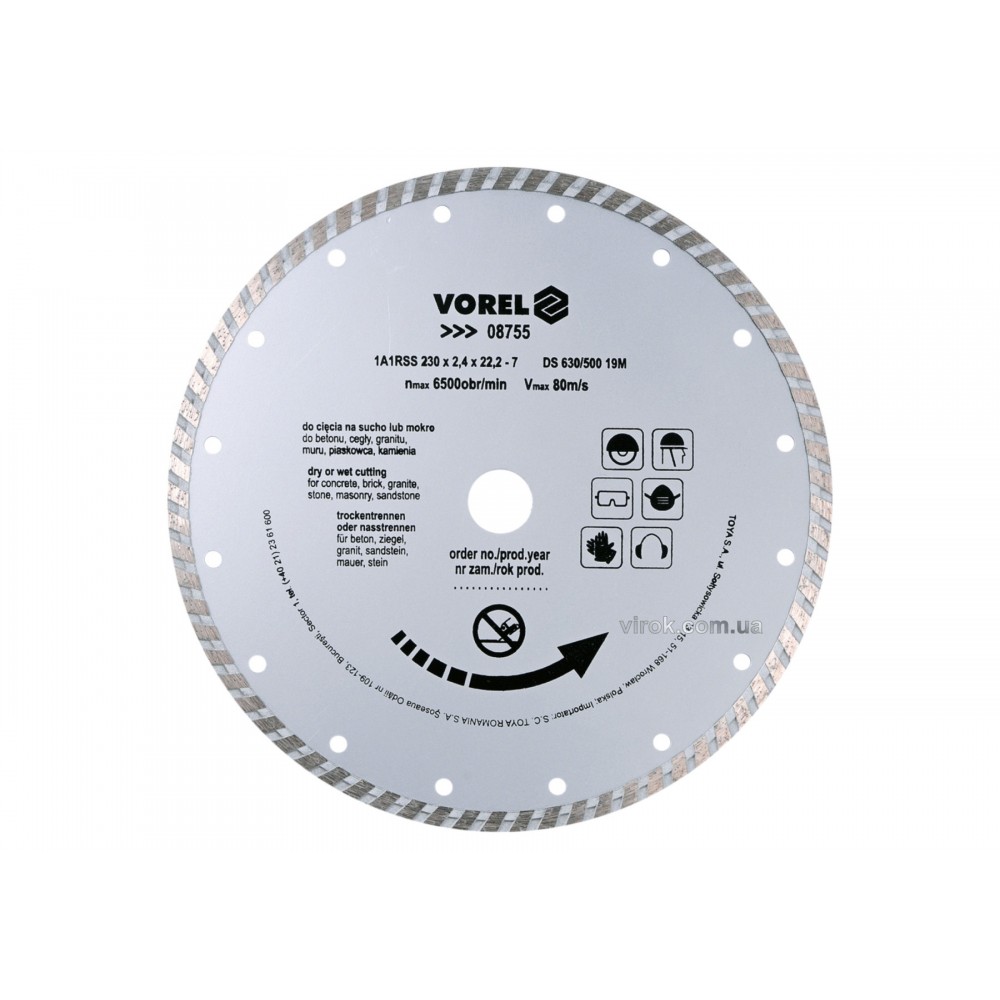 Диск відрізний алмазний VOREL "TURBO" Ø=230 мм