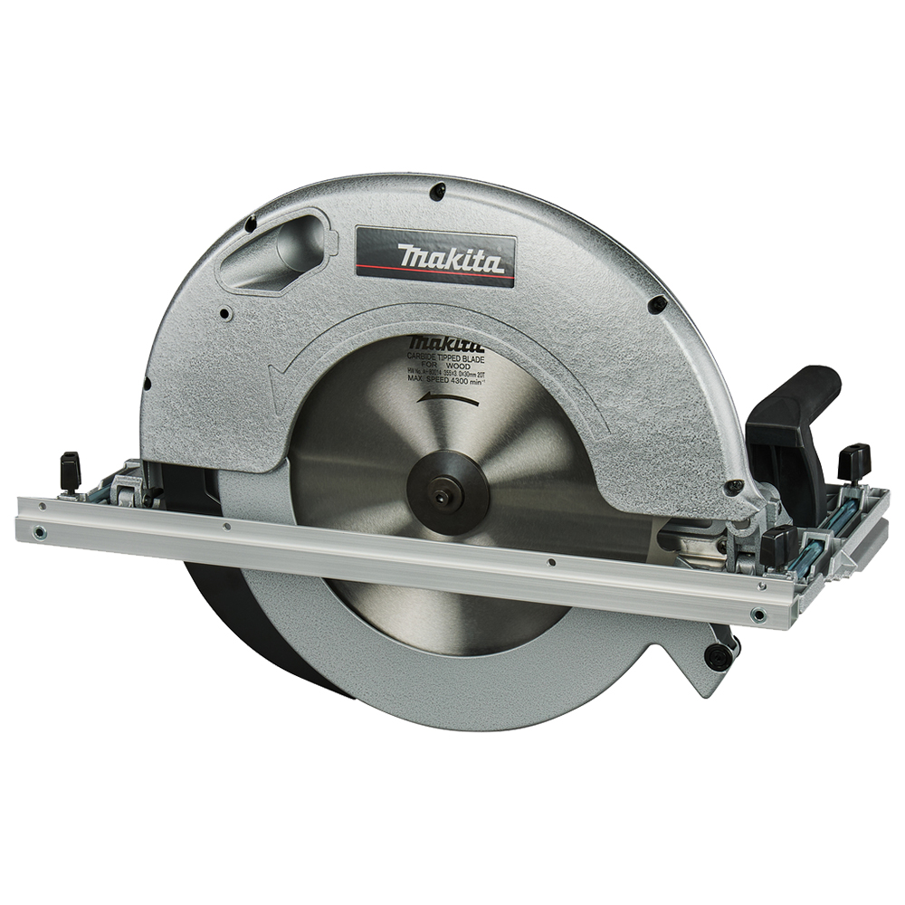Дискова пила Makita MG 5143R – це надзвичайно потужний та високопродуктивний інструмент, розроблений для робіт з розпилювання деревини. Завдяки номінальній потужності 2200 Вт та вражаючій швидкості обертання диска до 2700 об/хв, ця пила демонструє виняткову ефективність навіть під час роботи з особливо твердими матеріалами та великими об'ємами робіт. Диск діаметром 355 мм з посадковим діаметром 30 мм забезпечує глибину розпилу 90 мм під кутом 90° та 130 мм при спеціальному налаштуванні, що робить її ідеальною для роботи з товстими брусами та габаритними заготовками. Міцна конструкція та розміри 607 x 323 x 416 мм у поєднанні з вагою 14 кг свідчать про її стабільність та надійність, що є критично важливим для точного та безпечного різання.