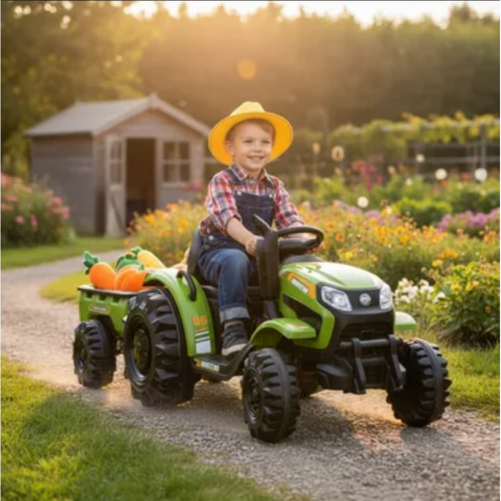 HECHT 50435 GREEN – це яскравий і функціональний дитячий трактор на акумуляторі, створений для маленьких любителів пригод віком від 3 до 8 років. Завдяки двом акумуляторам 12В/10 Ач потужність по 35В, трактор здатний розвивати швидкість до 3-5 км/год, забезпечуючи плавний і безпечний рух.