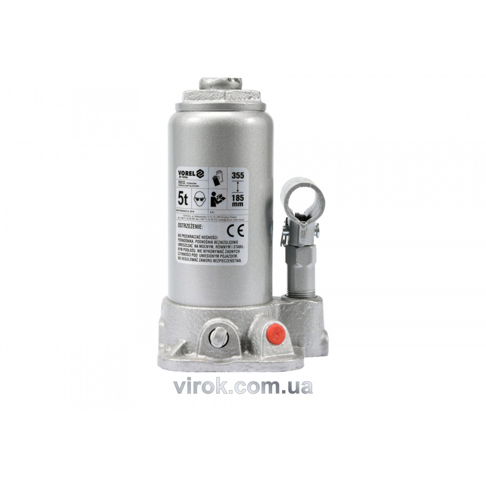 Домкрат VOREL 80032 – гідравлічний інструмент, призначений для підйому вантажу до 5 тонн на висоту від 185 до 355 мм. Зручна широка основа гарантує хорошу стійкість під час роботи. Легкий та зручний при переміщенні та зберіганні. Застосовується при проведенні ремонтних і будівельних робіт, при ліквідації наслідків різних аварій і катастроф, а також даний апарат є незамінним механізмом для автолюбителів.