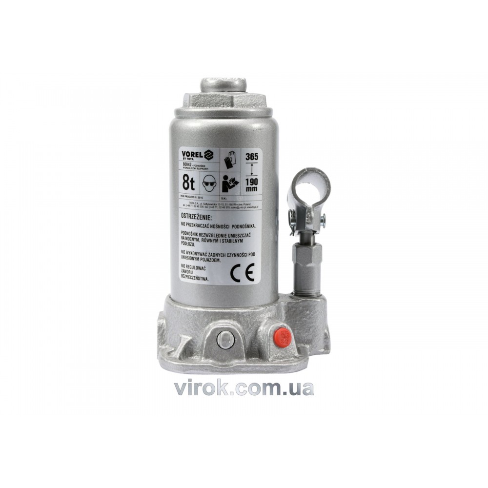 Домкрат VOREL 80042 – гідравлічний інструмент, призначений для підйому вантажу до 8 тонн на висоту від 190 до 365 мм. Зручна широка основа гарантує хорошу стійкість під час роботи. Легкий та зручний при переміщенні та зберіганні. Застосовується при проведенні ремонтних і будівельних робіт, при ліквідації наслідків різних аварій і катастроф, а також даний апарат є незамінним механізмом для автолюбителів.
