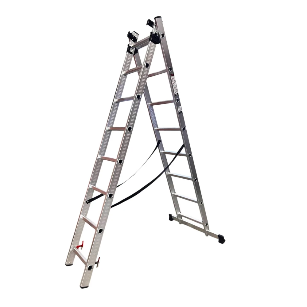 Опис Драбина алюмінієва трисекційна GTM KME308 3x8 сходинок 2.18-4.88м (KME308)
