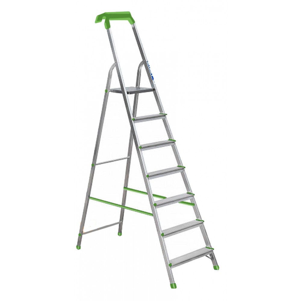 Стрем'янка Elkop ALW 507 P - одностороння драбина, призначена для домашнього використання. Завдяки антиковзаючим полімерним опорам може використовуватися як на вулиці, так і в приміщенні. Стрем'янки цієї серії обладнані широкою верхньою сходинкою (8х15 см) і зручною ручкою. Також представлена модель поставляється разом з верхньою полицею, яка кріпиться зверху і дозволяє без проблем зберігати невеликі інструменти або повісити відро, під час висотних робіт. Тепер у Вас нічого не впаде і не загубиться.