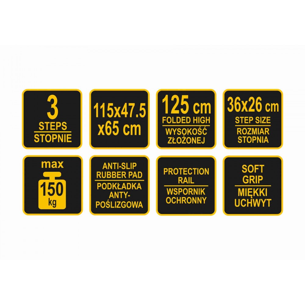 Драбина розкладна металева VOREL 3 сходинки 36 х 26 см з антиковзальною прокладкою 115 х 47х 65 см