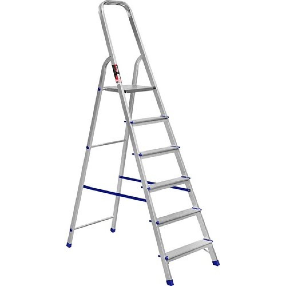 Stark SALW506 складається з 6-ти алюмінієвих сходинок, які зафіксовані заклепками. Ребриста поверхня сходинки запобігає ковзанню ноги для ще більшої безпеки. Верхня площадка виготовлена з міцної сталі, вона надійно фіксується в розкладеному стані. Зручно розміститися на драбини допомагає опора-рукоятка, за яку можна триматися, підіймаючись сходами.