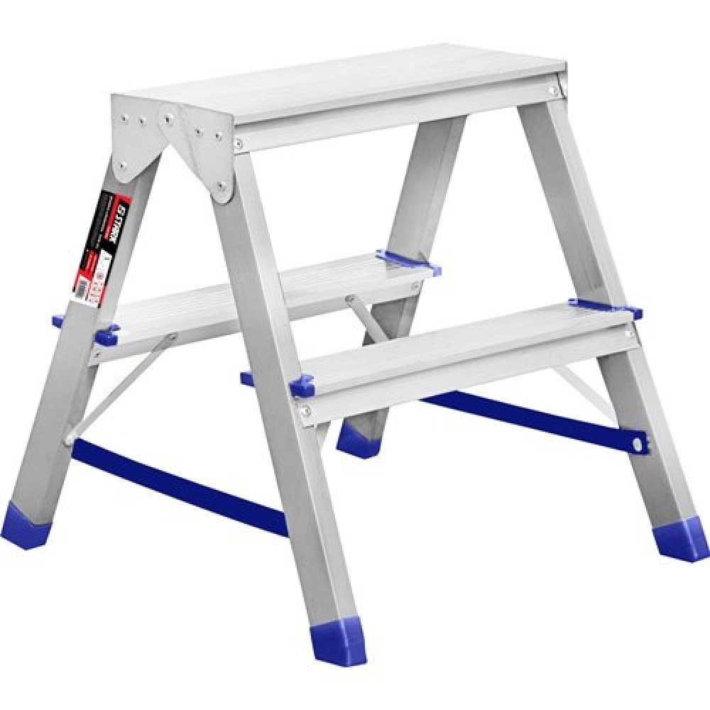 Stark SDHR402 - компактна алюмінієва драбина в якій сходинки розташовані по обидва боки, дозволить швидко прибрати в будинку, помити вікна, виконати ремонтні роботи.