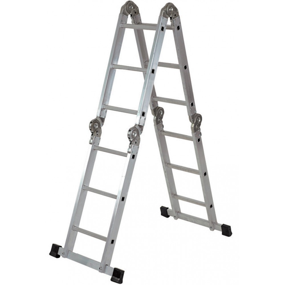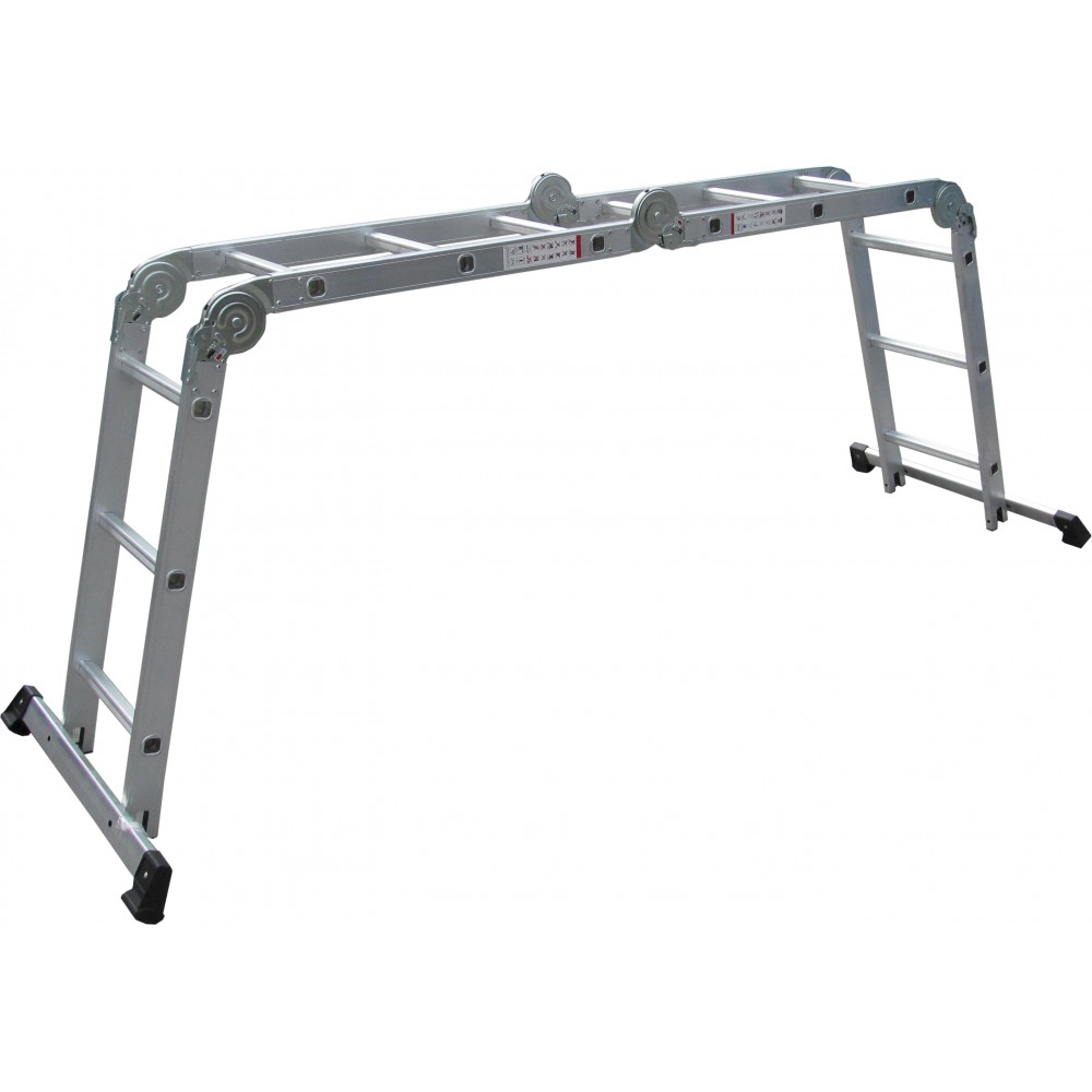 Драбина-трансформер Elkop M 4x3 AL - універсальна алюмінієва драбина, яка може виконувати функції драбини або приставних сходів. Представлена модель укомплектована спеціальною платформою, що дає можливість швидко і без зайвих зусиль перетворити її в будівельний поміст.