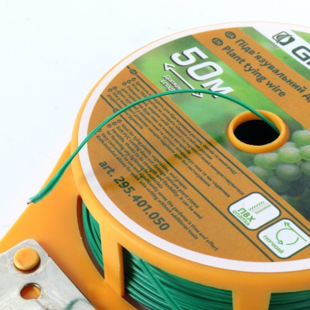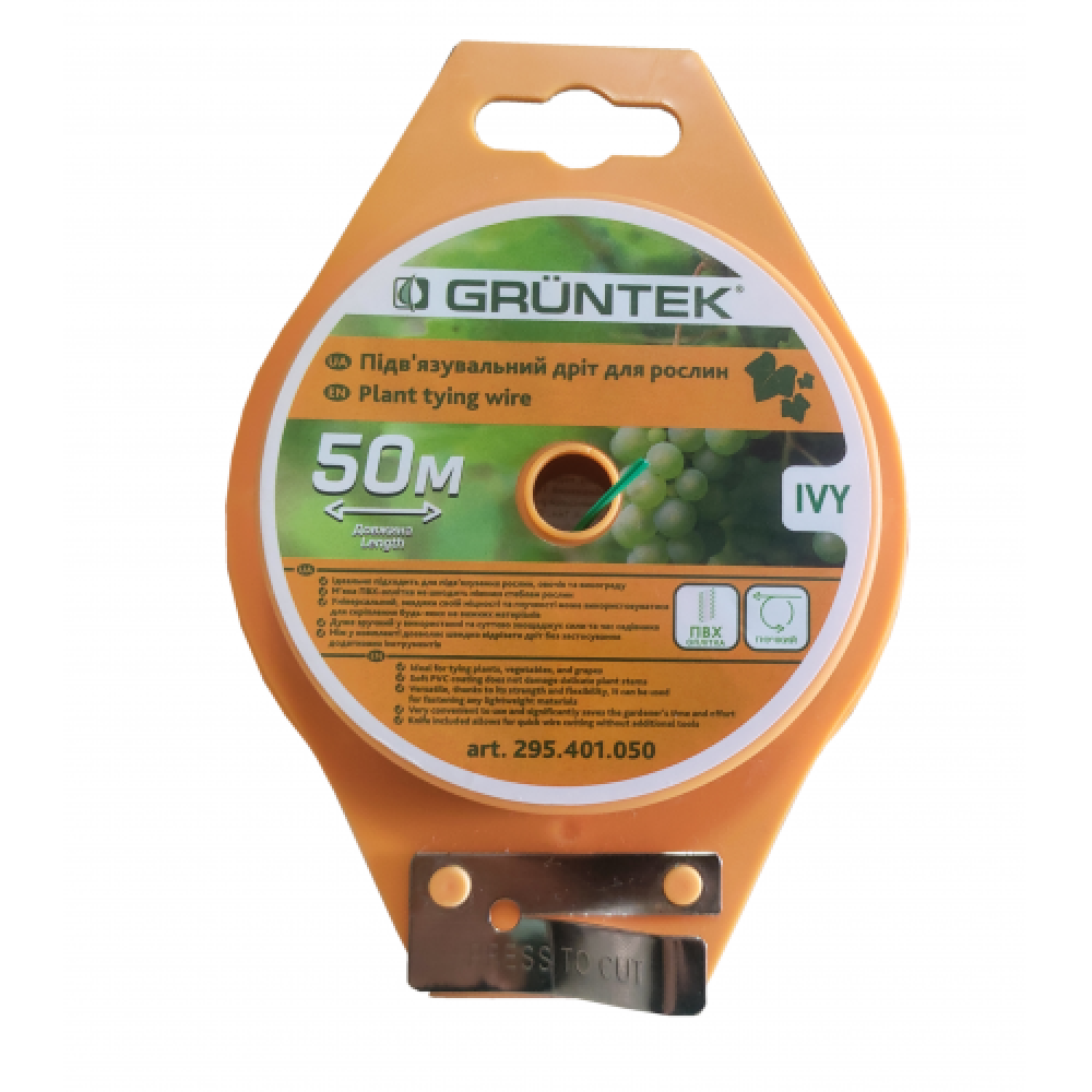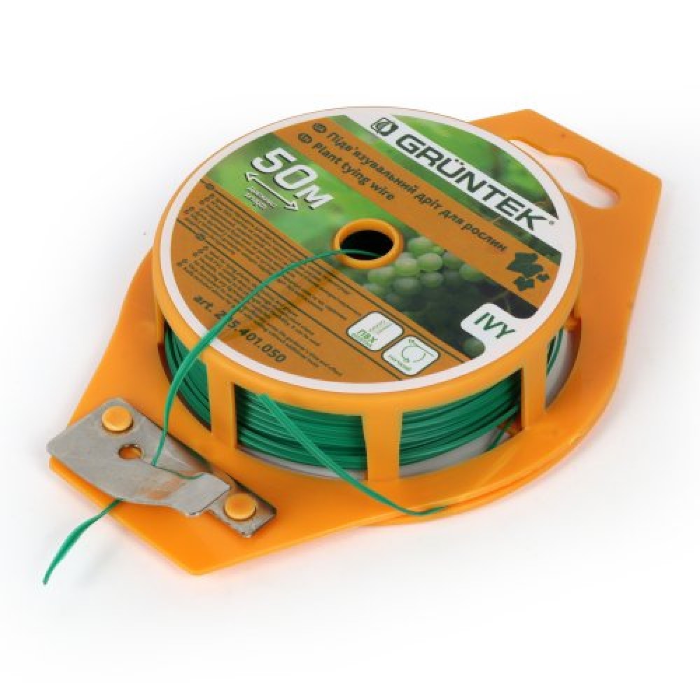Дріт для підв'язки рослин GRUNTEK Ivy з ножем – дозволяє швидко і без зусиль прив'язувати довгі стебла рослин до кілочків, рамок, сіток, парканів. Підходить для підв'язування овочевих культур, винограду, в'юнких квітів. Також може використовуватися для створення букетів з живих квіток, для створення поробок.