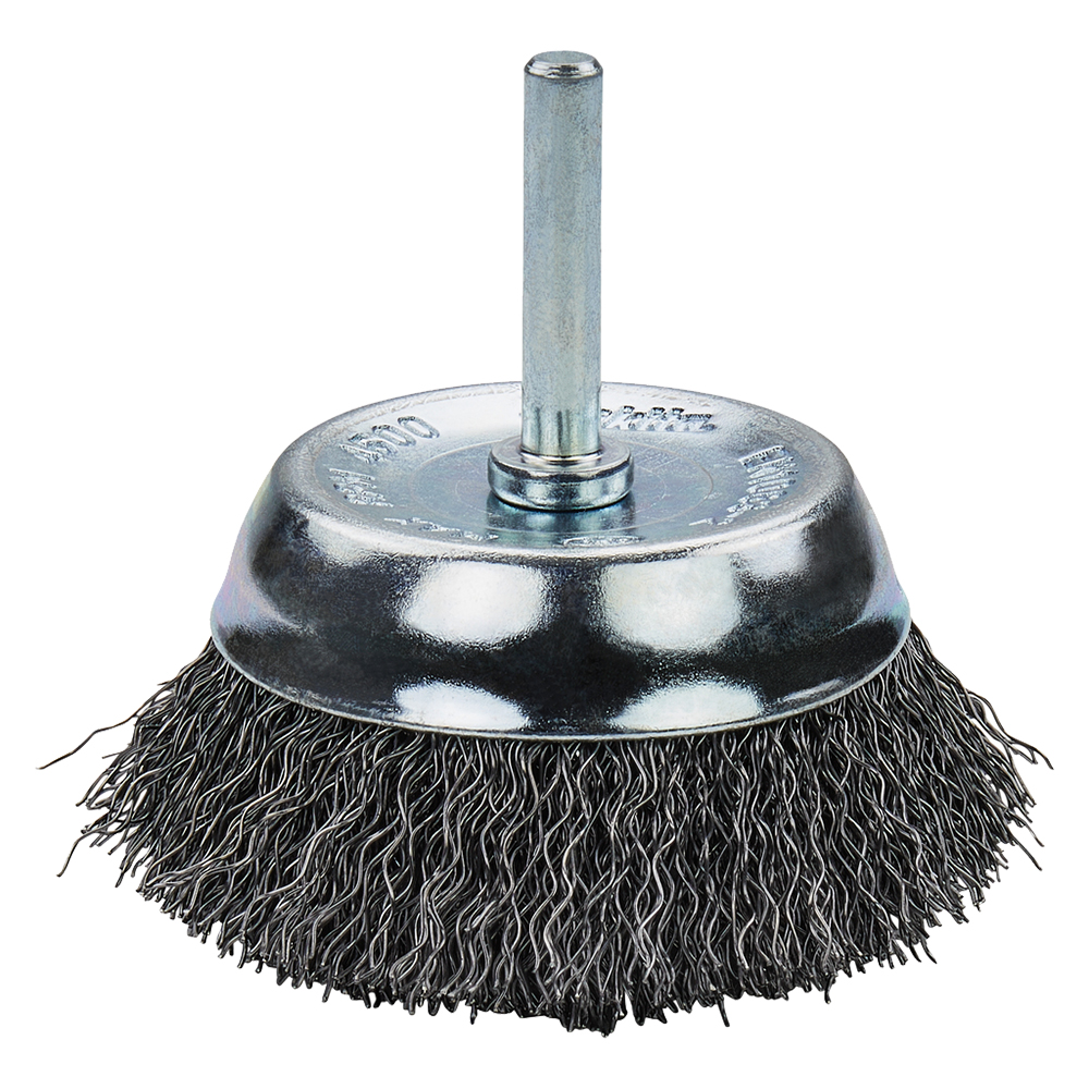 Чашкова дротяна щітка для дрилів 63 мм Makita застосовується для видалення іржі, очищення палубних дощок, видалення задирок, покриттів та фарб.