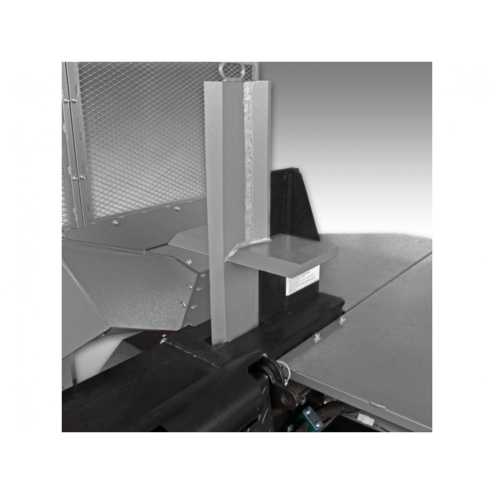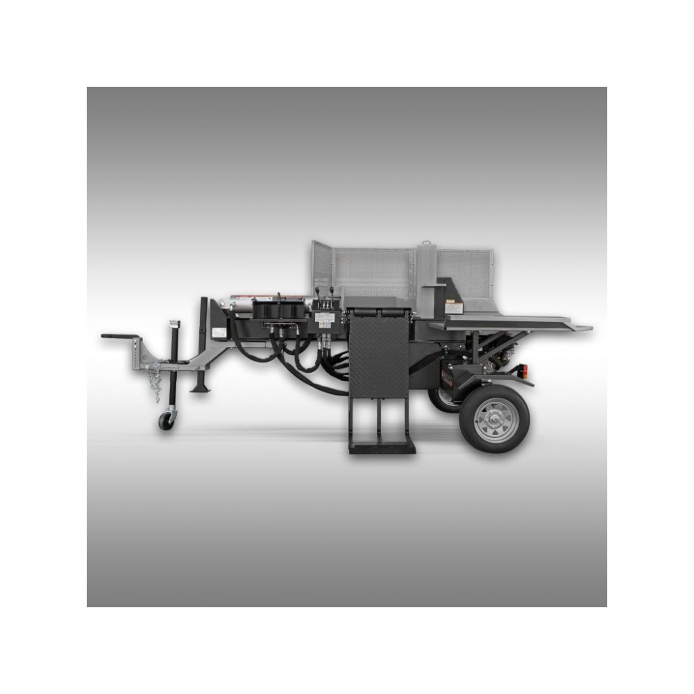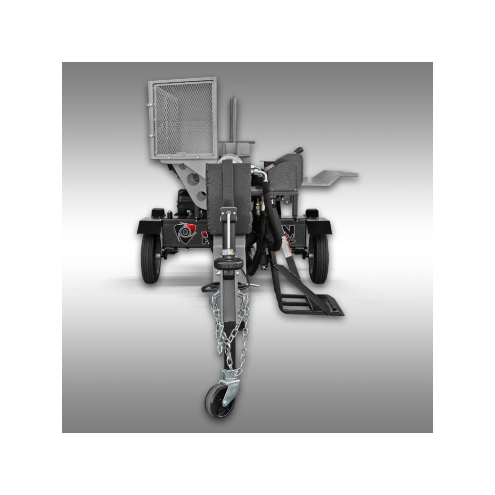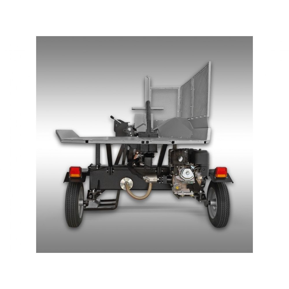 Вага пристрою складає 747 кг, але завдяки міцному шасі та стійкій зчіпці він залишається мобільним. Його можна легко транспортувати за допомогою трактора або іншого транспортного засобу. Гідравлічний розрізний клин дозволяє швидко адаптуватися до різних розмірів деревини, а підйомник колод значно спрощує завантаження. Просторий робочий стіл забезпечує комфорт і безпеку під час роботи, підвищуючи загальну ефективність.