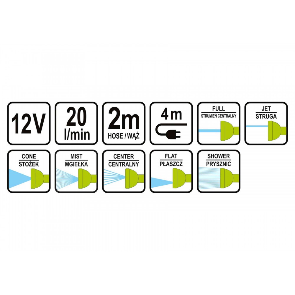 Душ портативний LUND 12 В 20 л/хв 4 м шланг 2 м 7 режимів