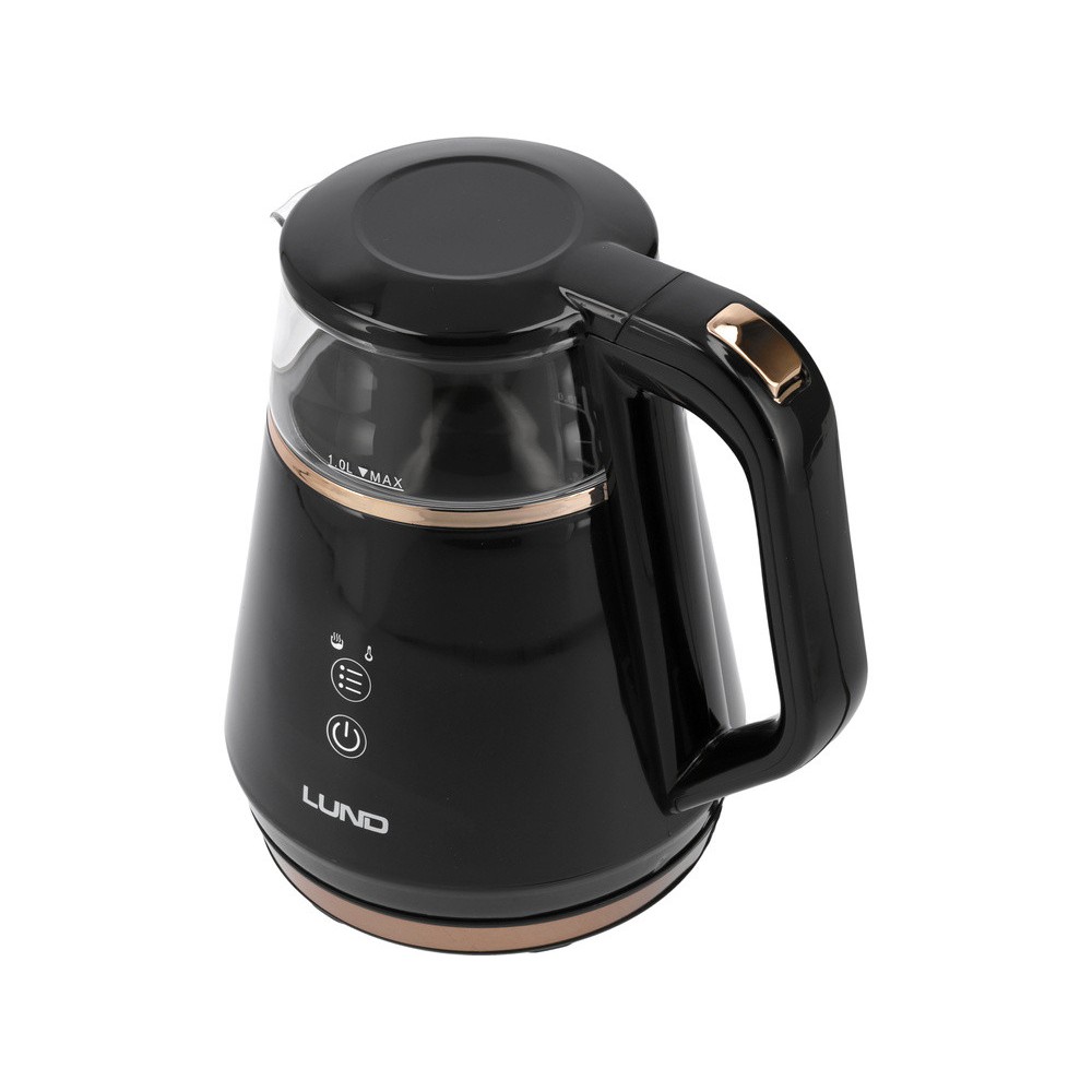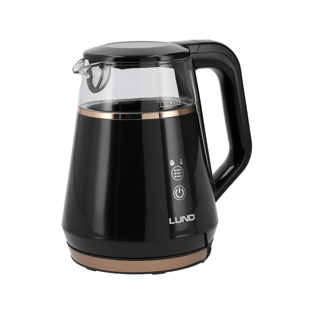Електрочайник з термостатом з боросилікатного скла і ПП LUND 1 л, 2100 Вт, живл від мережі 230 В