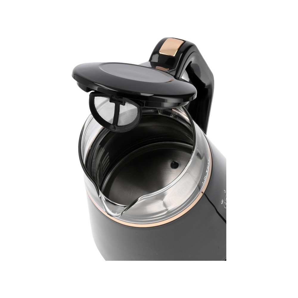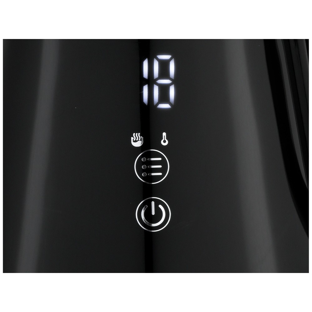 Знімний сітчастий фільтр забезпечує чистоту води. Чайник оснащений світлодіодним підсвічуванням і цифровою панеллю управління.