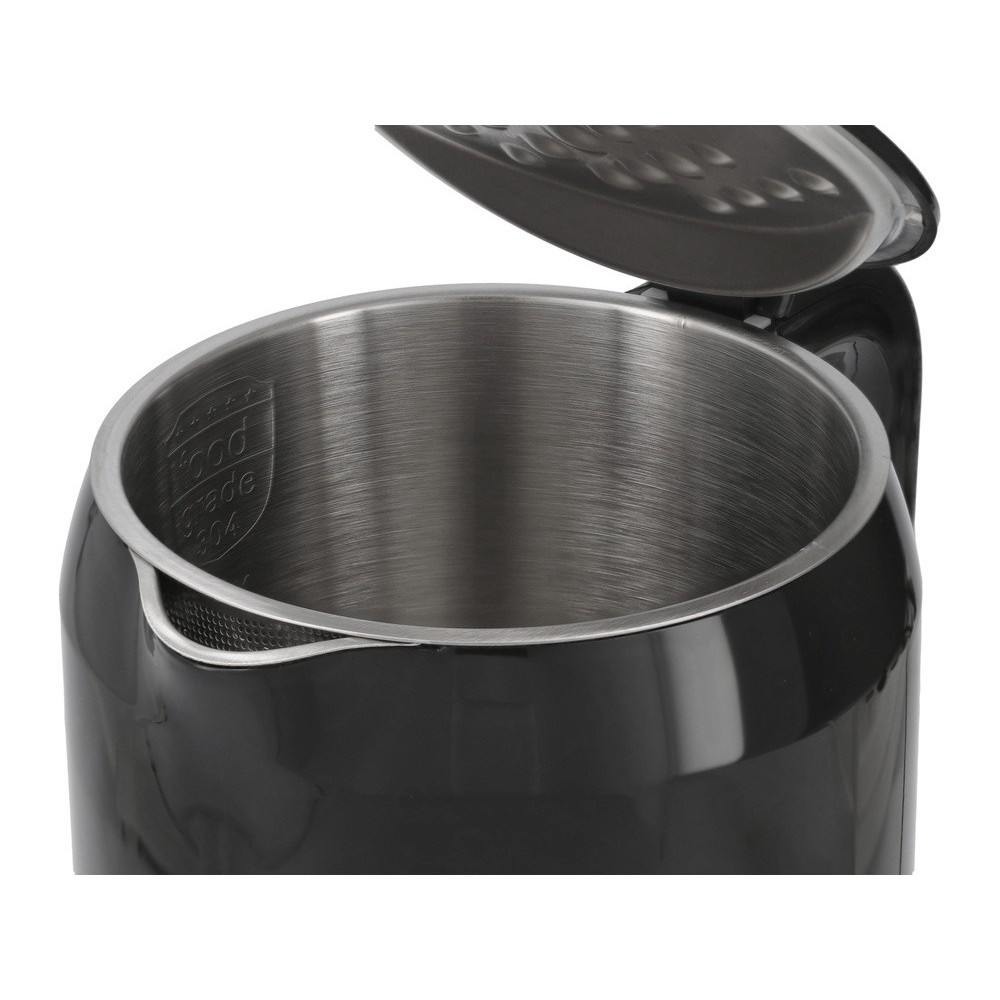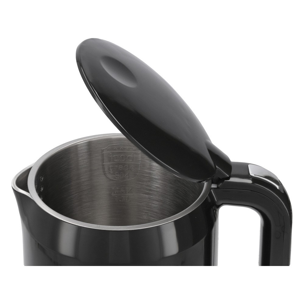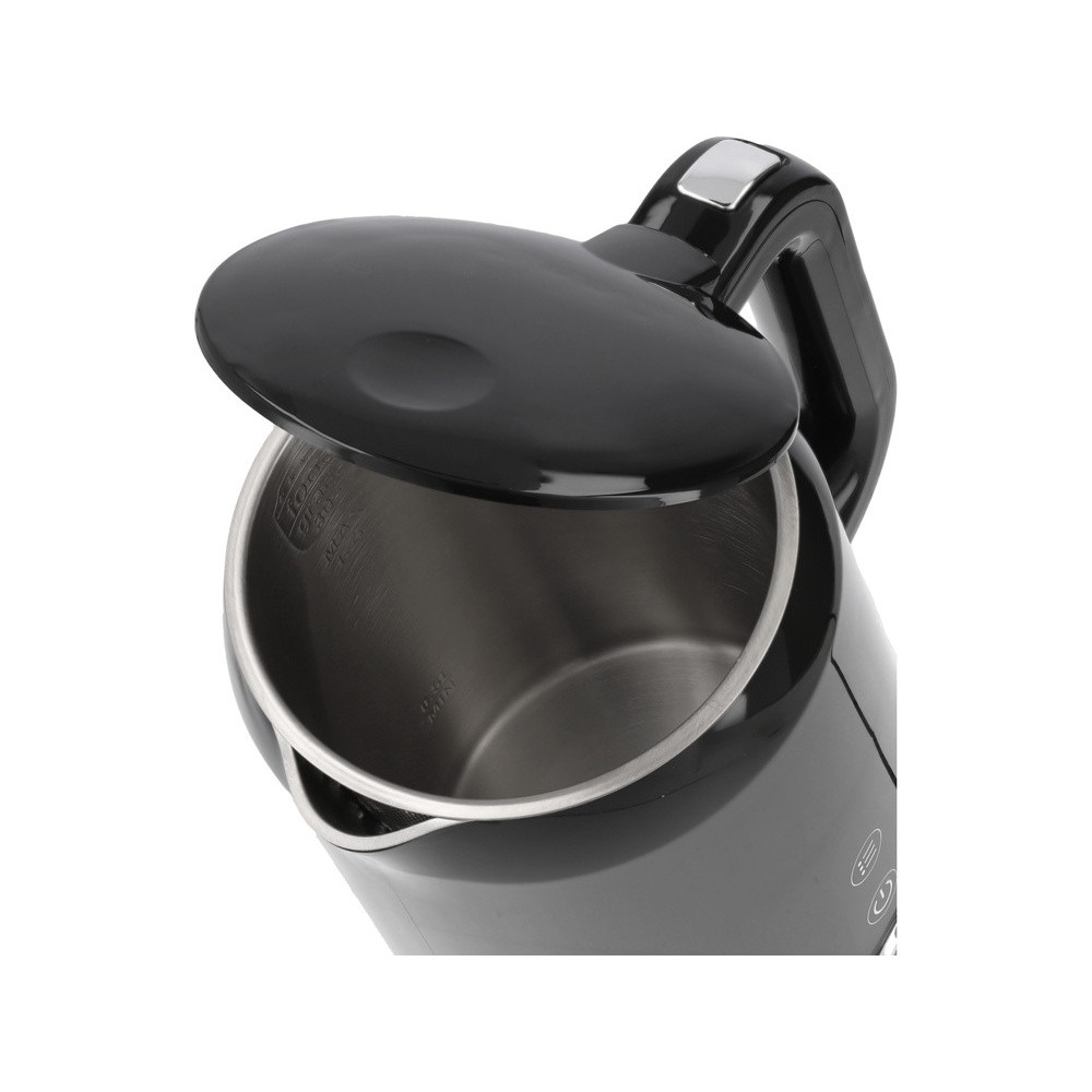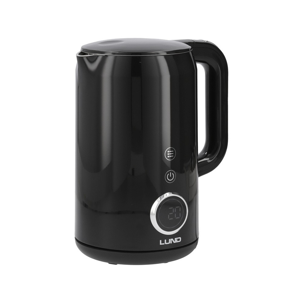 Електрочайник з термостатом з нержавіючої сталі, чорний LUND 1,7 л, 2200 Вт, живл від мережі 230 В