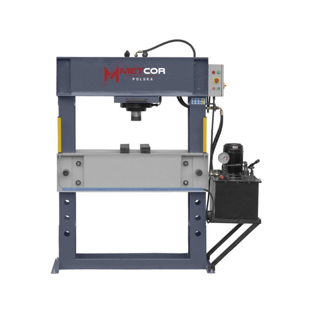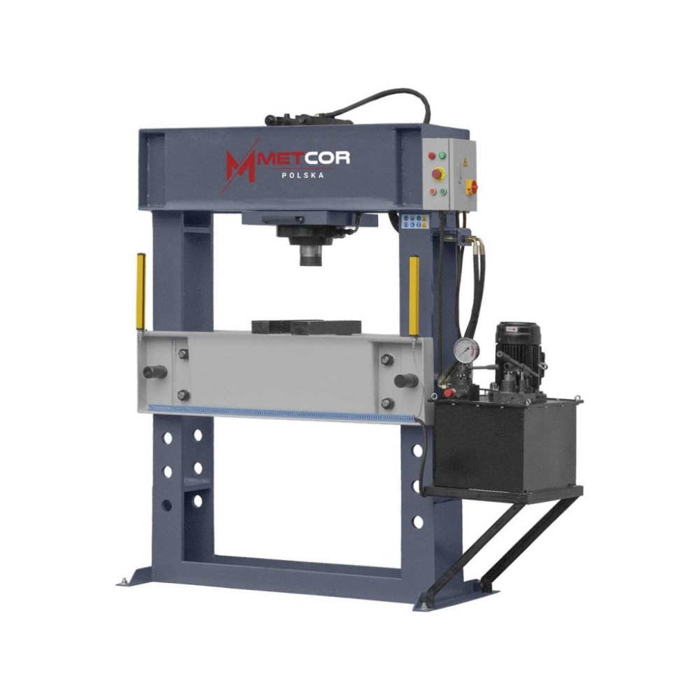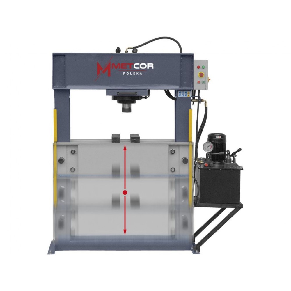 Гідравлічний прес METCOR HPP-100 - це професійне промислове обладнання для пресування, згинання, штампування, рихтування та інших операцій по обробці металоконструкцій під тиском, яке забезпечує зусилля до 100 тонн. Гідравлічна система приводиться в рух електродвигуном потужністю 3 кВт, що забезпечує високу швидкість та ефективність обробки. Хід поршня становить 250 мм, хід столу - 405 мм. Плавне регулювання висоти робочого столу дозволяє адаптувати прес до різних типів операцій.