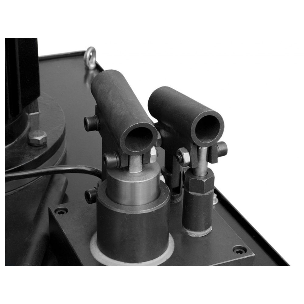 Жорстка зварна рама зі сталевих профілів мінімізує вібрації та забезпечує виняткову стабільність під час роботи. Вдосконалена гідравлічна система дозволяє точно регулювати зусилля, що дає змогу якісно виконувати навіть найскладніші завдання. Для контролю тиску є чіткий манометр, для запобігання перевищенню тиску - запобіжний клапан. Змінні пуансон і багатоканальна матриця дозволяють легко налаштувати цей гідравлічний прес 100 тонн під конкретні робочі потреби.