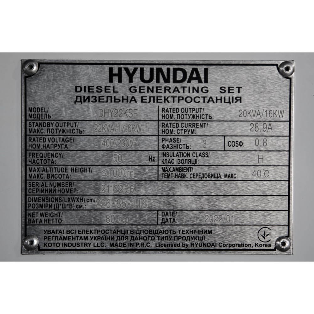 Усі дизельні електростанції HYUNDAI постачаються в наступній комплектації: