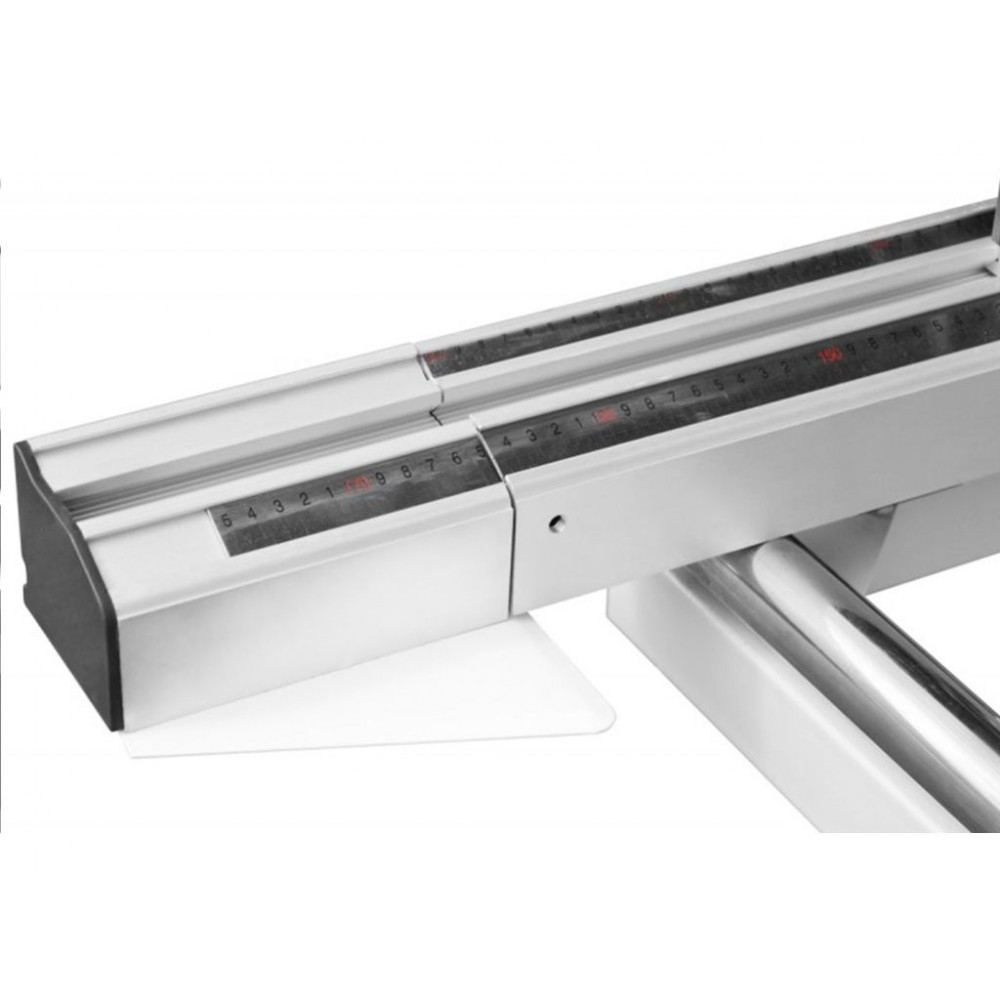 Великий і міцний стіл дає змогу зручно розпилювати габаритні заготовки. Завдяки рухомій каретці з профільованого алюмінію можна здійснювати якісний різ з максимальною довжиною 3200 мм, а наявність двоступеневого регулювання швидкості дає можливість встановити оптимальні для певного матеріалу робочі параметри.