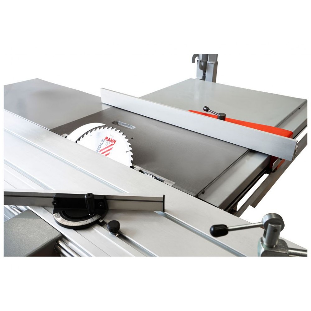 Форматно-розкрійний верстат Holzmann FKS400VF32GOLD_400 - це надзвичайно ефективне обладнання для розкрою плитних матеріалів на меблевих і столярних виробництвах. Великий основний стіл з 2 розширеннями та рухомий стіл 3200х400 мм з розширенням 1320х660 мм дозволяють якісно працювати з великими щитами і панелями. Максимальний діаметр основного диска - 400 мм, підрізного диска - 120 мм (пильні диски у базову комплектацію не входять). Пильний вузол регулюється по висоті і куту нахилу з панелі керування або за допомогою перемикачів. Підрізний вузол з незалежним двигуном 750 Вт має ручне регулювання висоти і кута нахилу. Потужність основного двигуна - 4 кВт (3 фази).