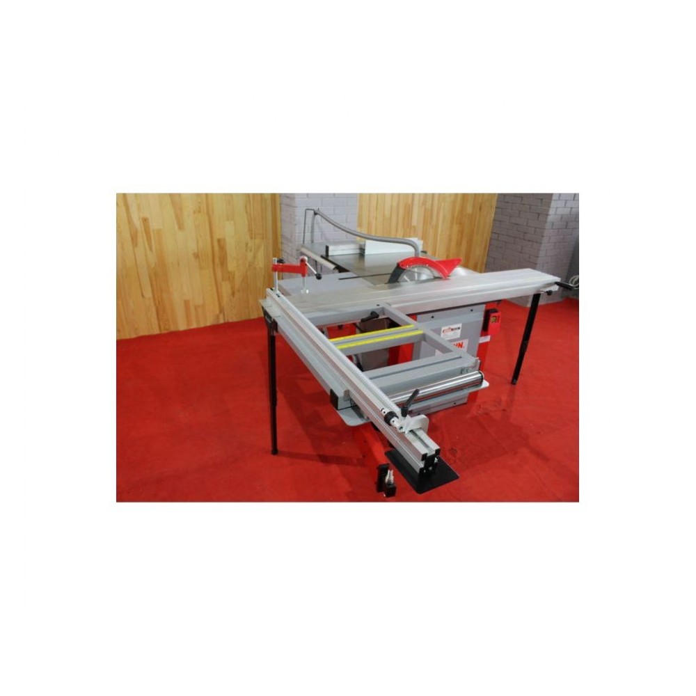 Пильний вузол з підрізним диском, що регулюється по висоті і куту нахилу, великий робочий стіл з можливістю розширення та алюмінієва каретка з шарикопідшипниковою направляючою дають можливість здійснювати ідеальний розпил різноманітних дерев’яних деталей. А завдяки потужному двигуну і можливості регулювання швидкості полотна ви зможете працювати з матеріалами різної твердості.