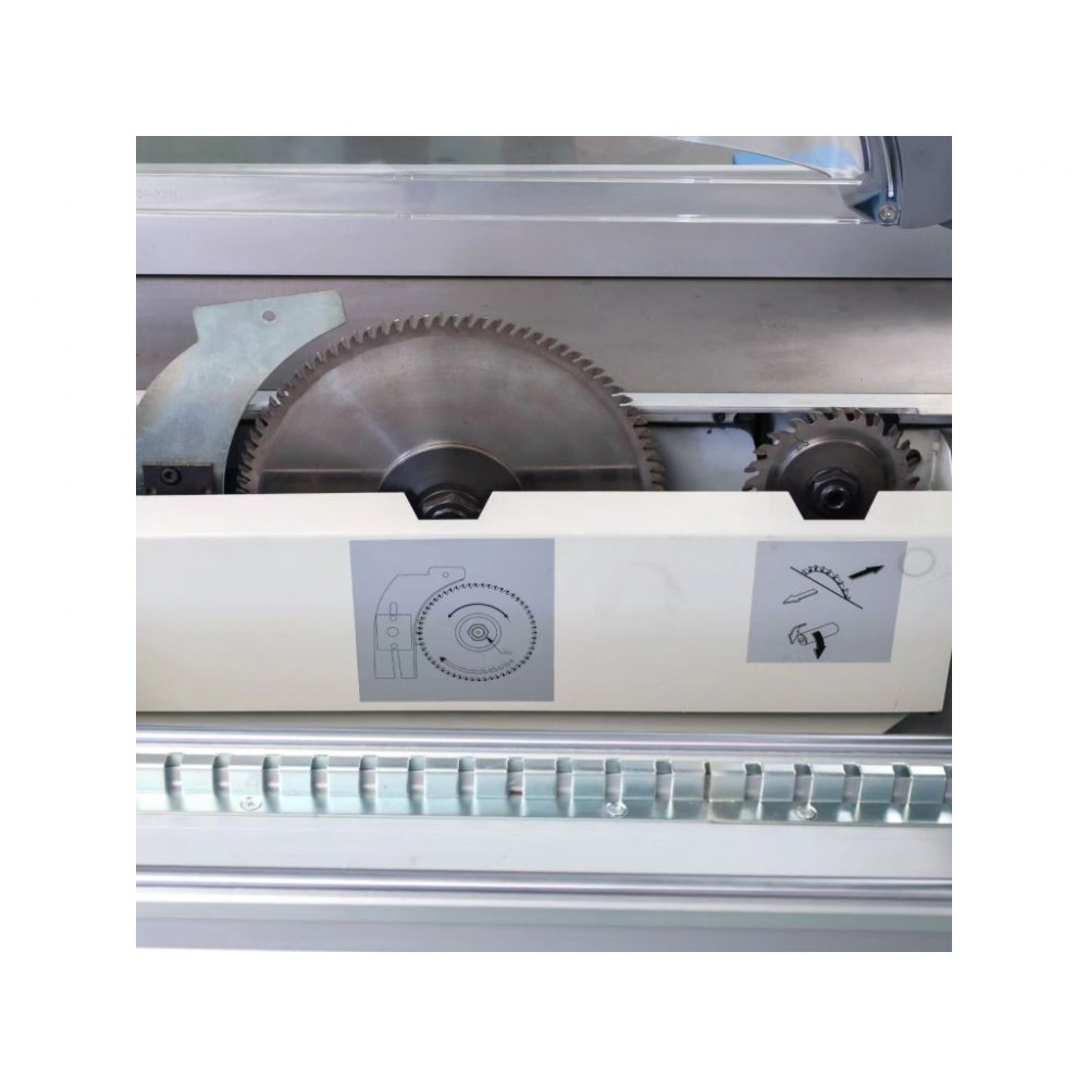 Один із прапорцевих упорів на поперечній лінійці оснащений блоком цифрової індикації, що забезпечує високу точність при установці розмірів розкрою плитних матеріалів. Роздільна здатність 0,1 мм.
