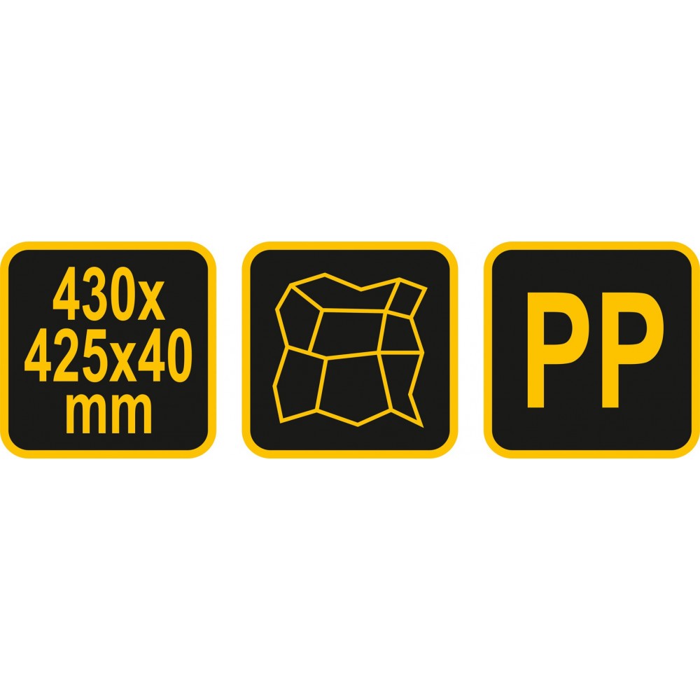Форма для виготовлення бруківки, що імітує плитку або каміння. Форма виготовлена з твердого поліпропілену, що робить її багаторазовою. Щоб отримати найкращий ефект за короткий час, варто використовувати кілька форм, одночасно.