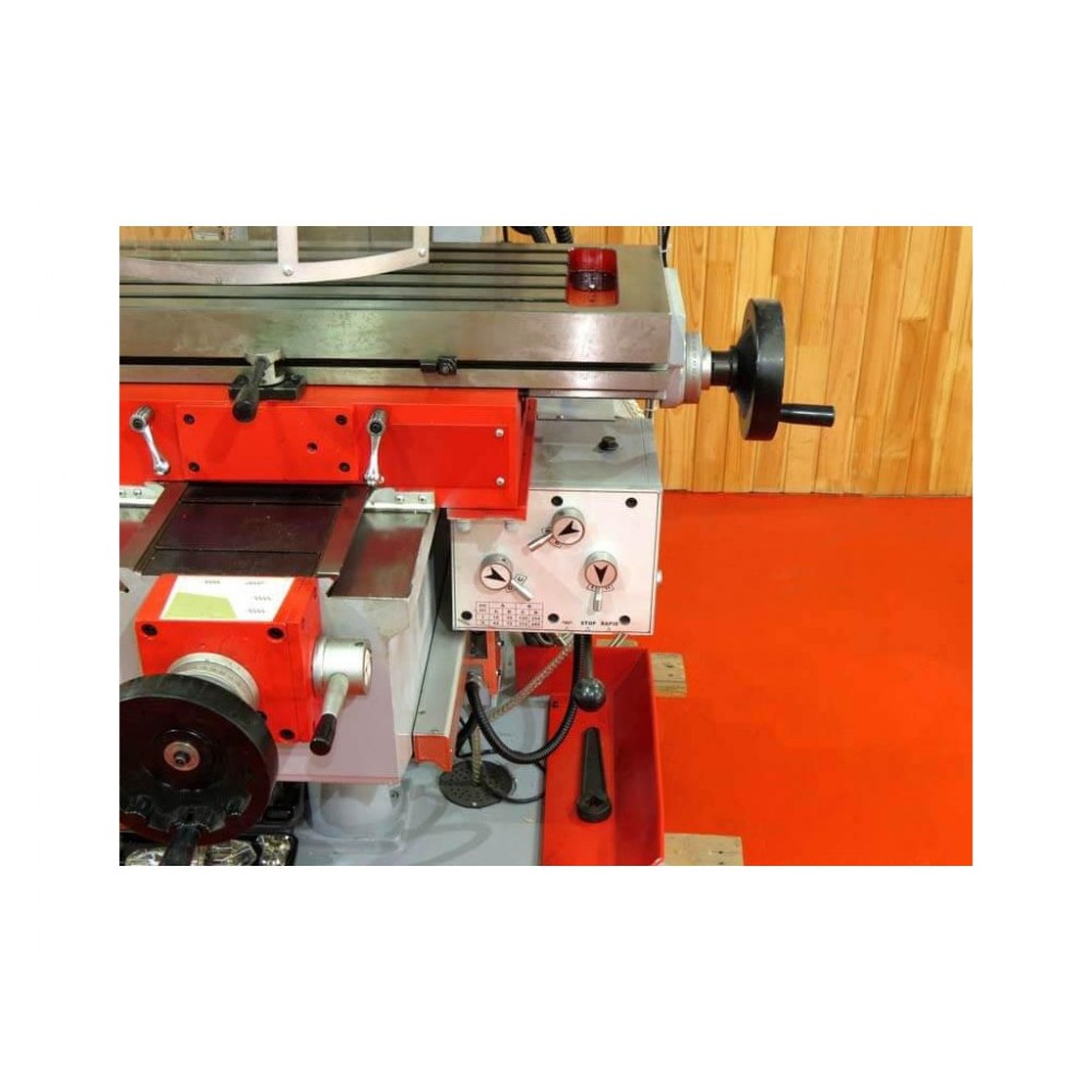 Масивна станина з сірого чавуну поглинає вібрації й забезпечує точність і стабільність роботи. Точний поперечний стіл з п’ятьма Т-подібними пазами має розмір 1270x260 мм і витримує значні навантаження, що дозволяє зручно працювати з важкими, габаритними заготовками. Всеракурсна універсальна фрезова головка дає змогу якісно працювати під різними кутами. Потужність двигуна 2,2 кВт і швидкість обертання шпинделя до 1600 об/хв забезпечують продуктивну роботу верстата на штучних і дрібносерійних виробництвах.