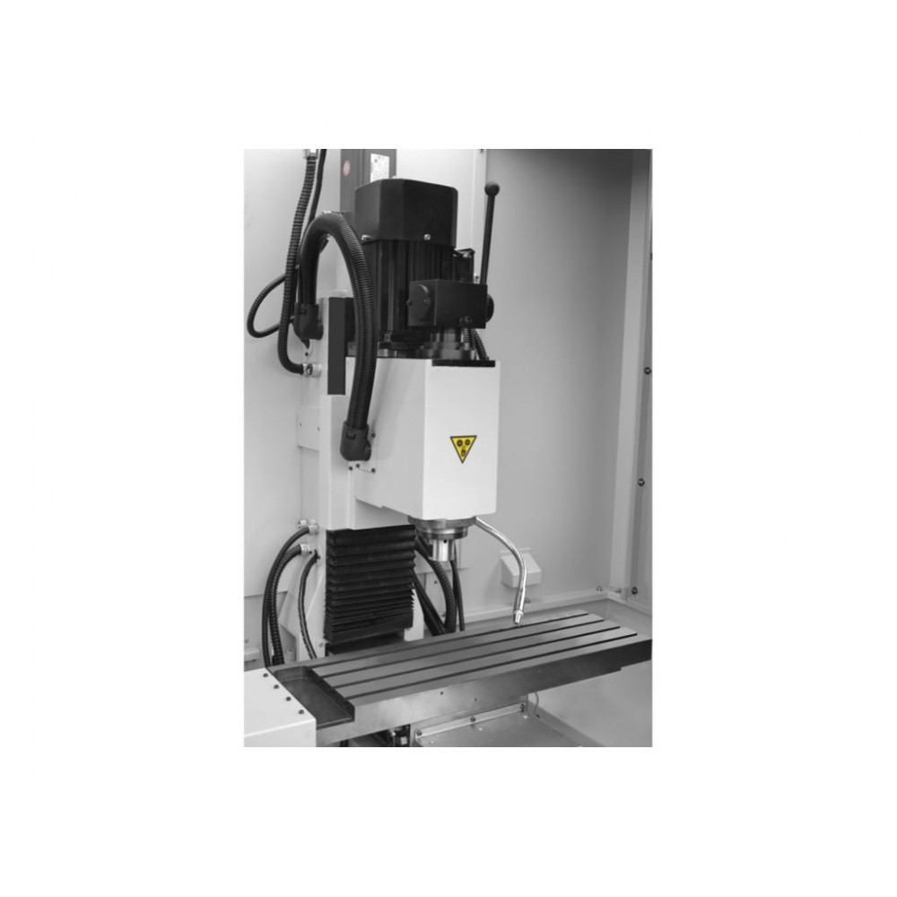 Фрезерний верстат з ЧПУ Mill 350 може працювати по трьох осях. Що стосується функцій управління, в нашому розпорядженні: лінійна інтерполяція, кругова інтерполяція, фіксовані цикли, можливості центрування інструменту, функція підпрограми, функція самодіагностики.