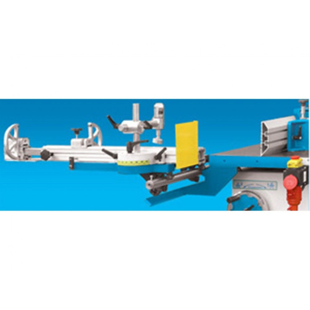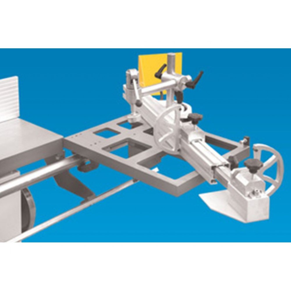 Шипорізна каретка (як додаткова опція) Комплект для шипонарізування складається з кожуха Ø 400 мм, спеціального столу, встановленого на каретку і поворотною лінійки з ексцентриковим притиском. |