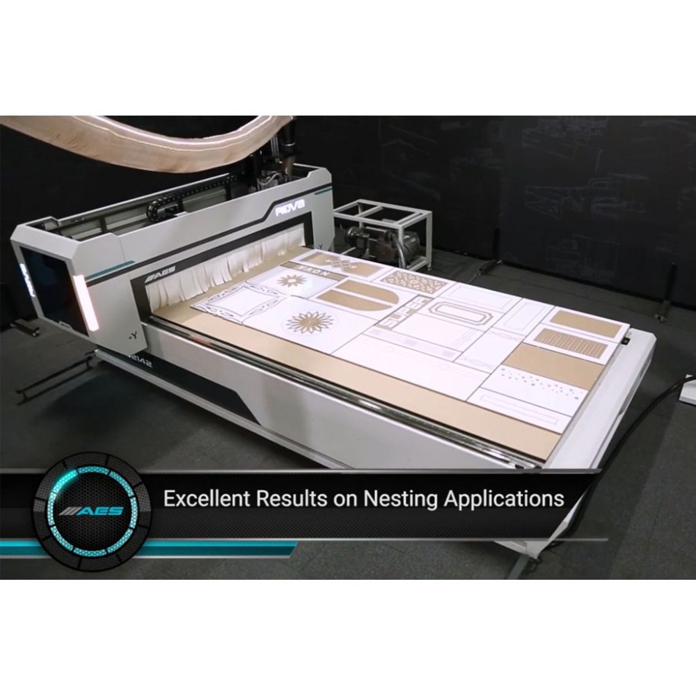 Трьохосьові обробні центри з ЧПУ серії AES Nova створені для забезпечення високої продуктивності та низької вартості. Nova дозволяє оптимізувати час і джерела на вищому рівні, розроблені спеціально для вкладеності. Nova, може проводити обробку на високому рівні за допомогою зубчастої рейки і шестерні для високої швидкості і позиціонування.