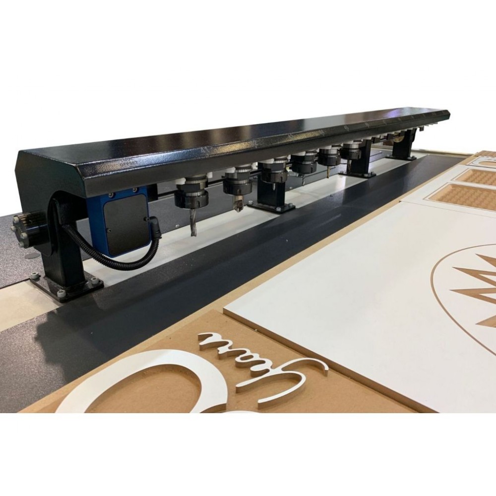 • 9 вертикальних шпинделів, 5 осей X, 5 напрямок осі Y;