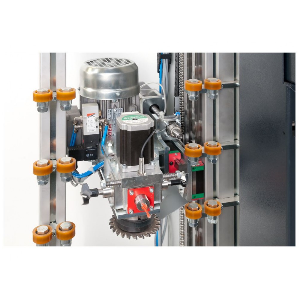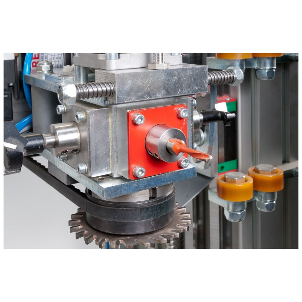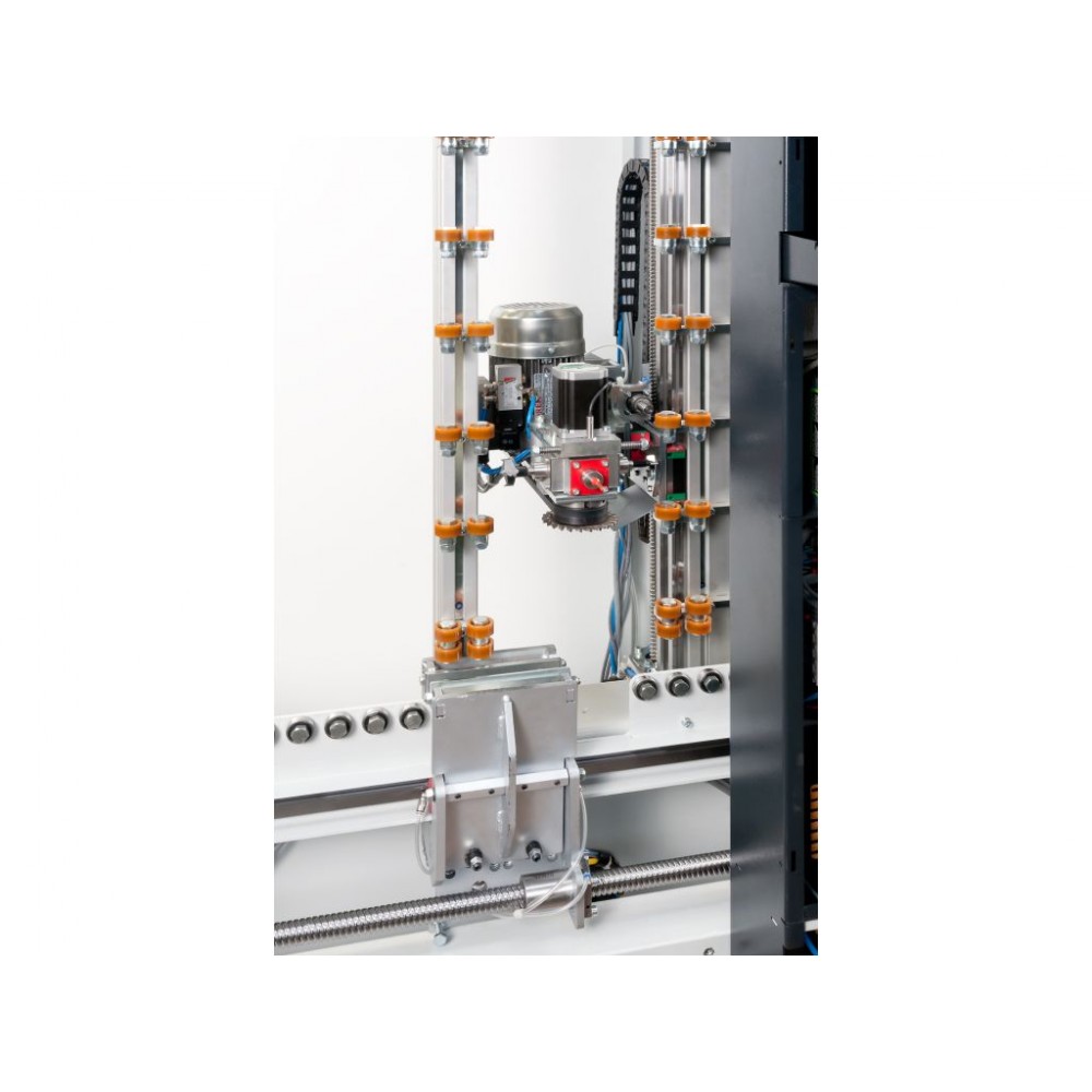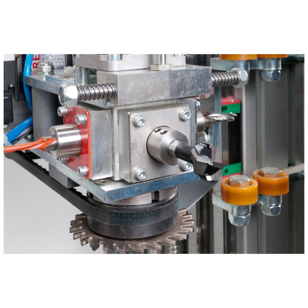 Свердлильно-присадочний верстат Robland ВМ 3000 з ЧПУ призначений для свердління отворів під фурнітуру, елементи кріплення, петлі, шканты, стяжки і т. д. в деталях меблевого виробництва. Верстат має 3 керовані осі, свердлильну голову з 4-ма патронами і вбудованим пільним диском для пазования, інтерфейс російською мовою. Свердлильна голова переміщається по осі А на 360°, дозволяє здійснювати свердління отворів в пласті і торці панелей, свердління отворів під петлі. Верстат має нижній захват для фіксації заготовки.