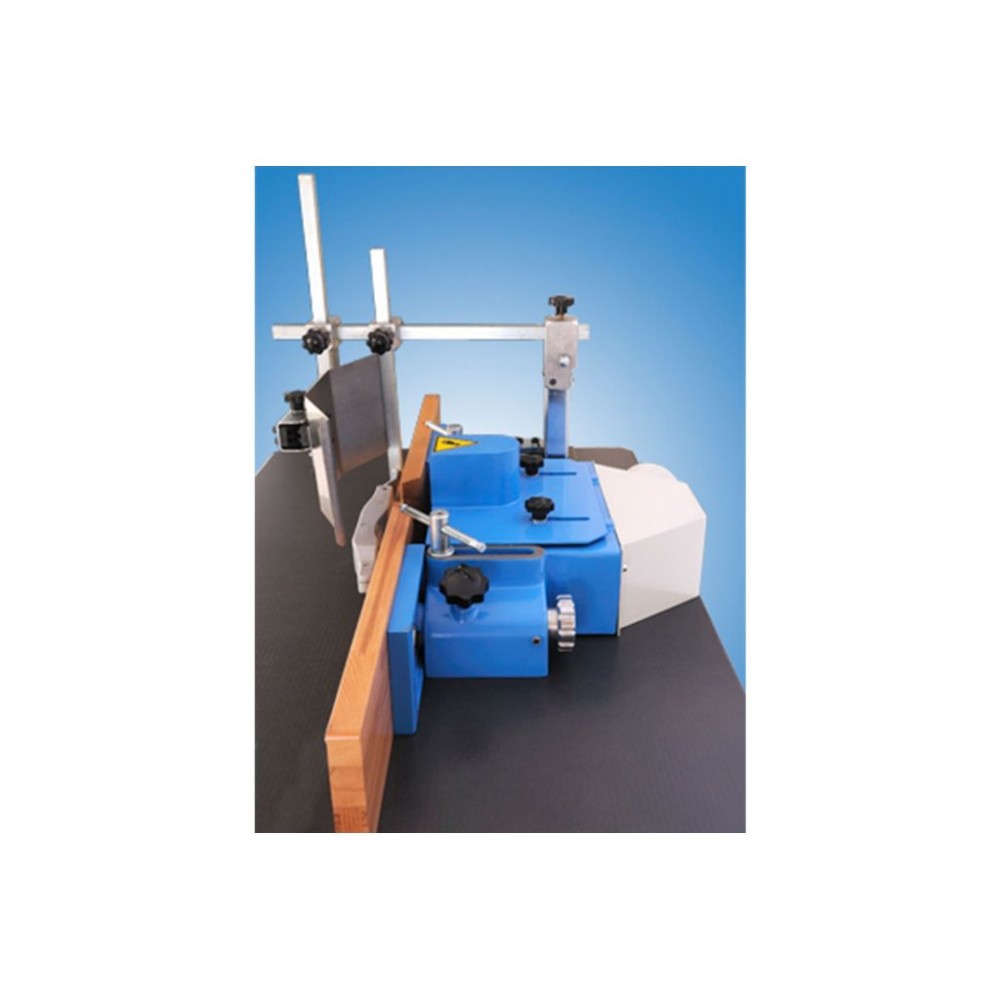 Верстат має масивний чавунний робочий стіл зі шліфованою поверхнею, непохитний фрезерний шпиндель, захисний кожух для профілювання, три швидкості обертання шпинделя, рухому каретку, а також електромеханічну гальмівну систему.