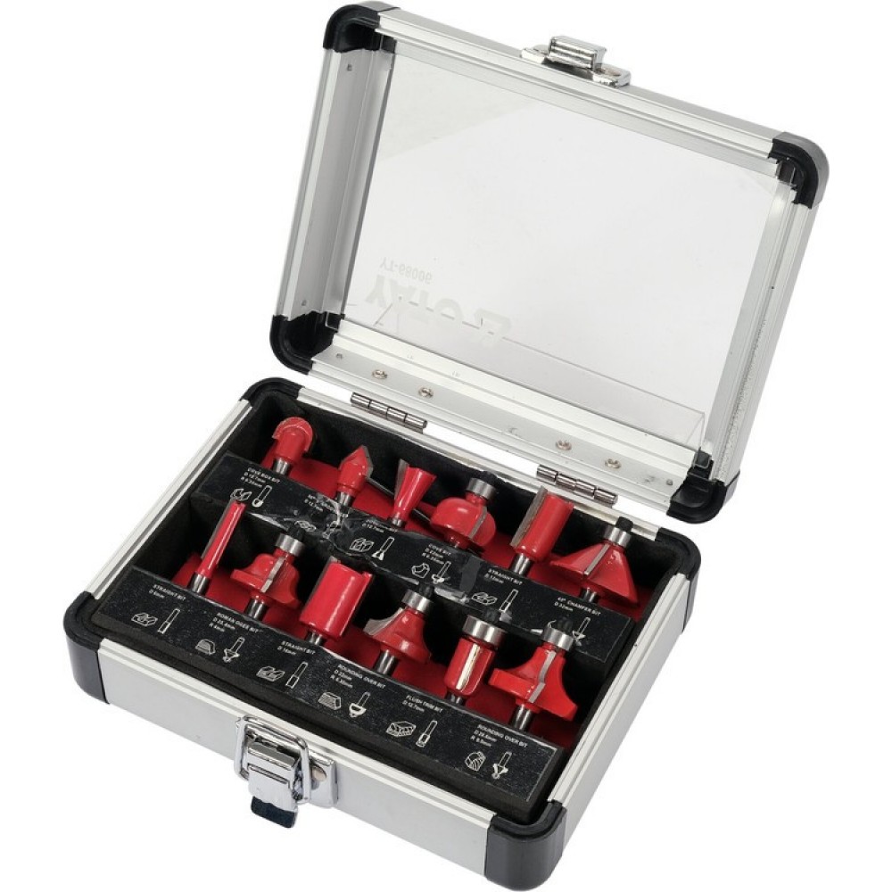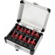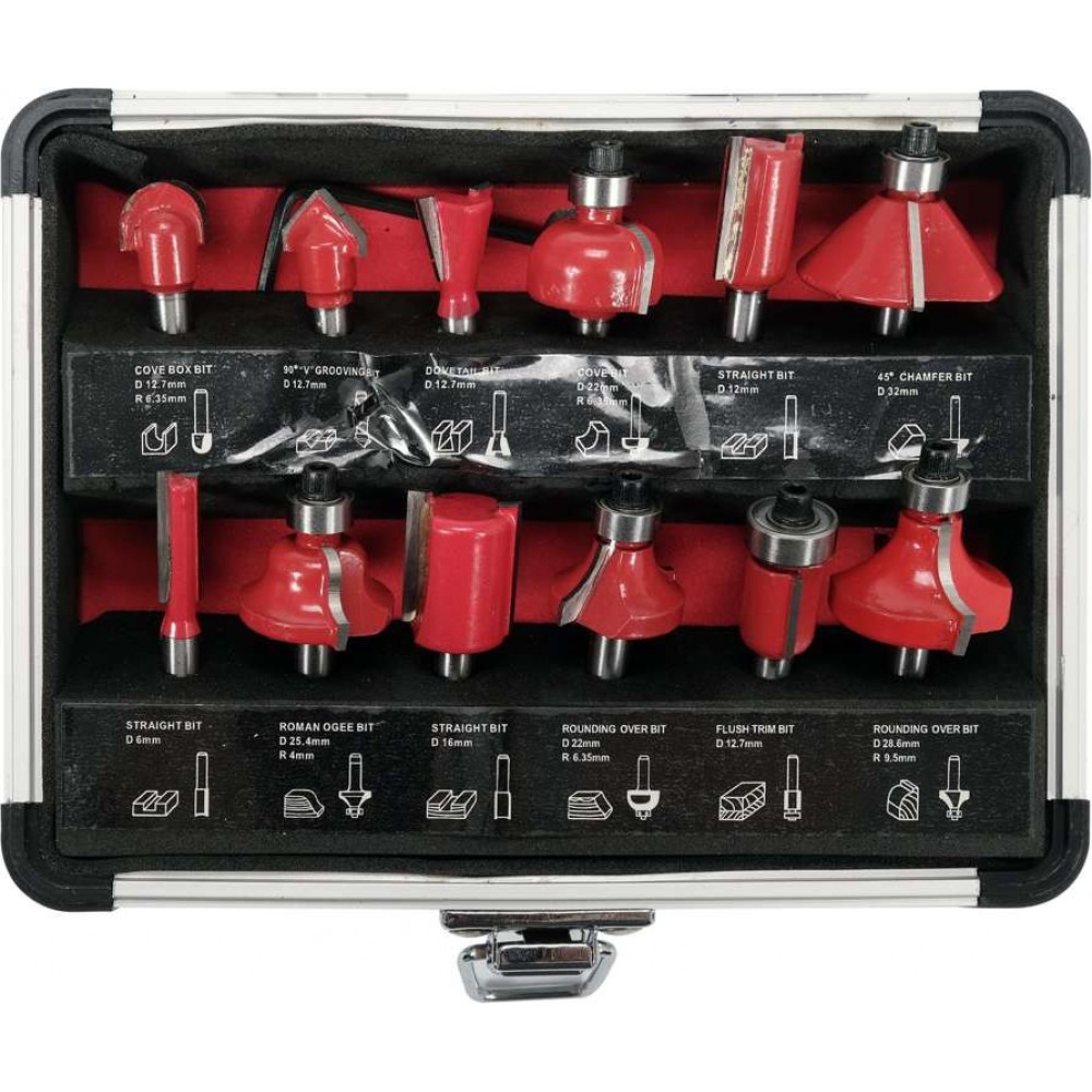 Набір із 12 хвостовиків для точної обробки деревини фрезами.