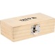 Три крайкові різці закінчуються підшипником для полегшення спрямування інструменту. Набір упакований в дерев'яний футляр.