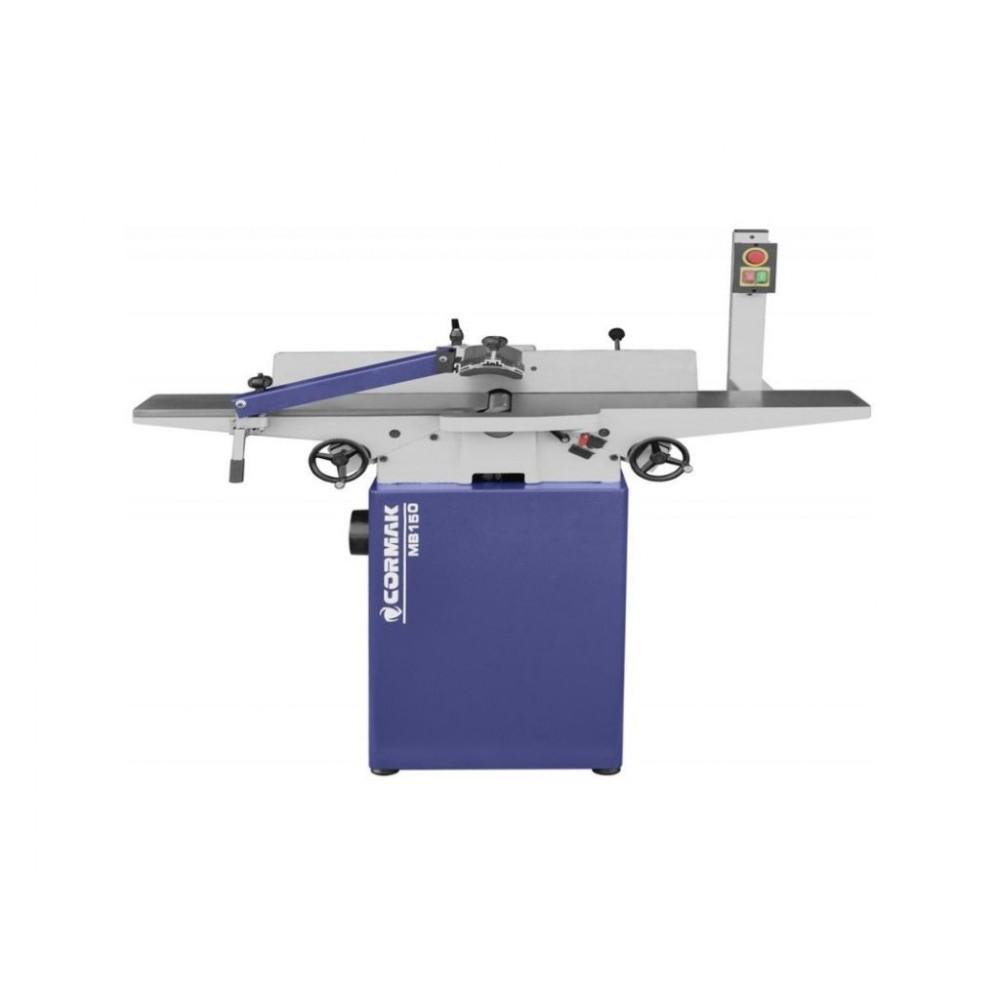 Фугувальний верстат Cormak MB150 з шириною обробки 152 мм і компактною конструкцією ідеально підходить для самостійних майстрів і невеликих майстерень з обмеженою робочою площею. Потужність двигуна становить 1,1 кВт, живлення від напруги 230 В. Оснащений 3-ножовим стругальним валом діаметром 62 мм зі швидкістю обертання 4500 об/хв. Глибина зняття за прохід - до 13 мм.