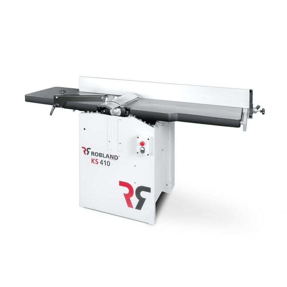 Фугувальний верстат Robland KS 410 призначений для стругання заготовки по пласті і крайці. Загальна довжина столу 1800 мм дозволяє обробити довгі заготовки. У базовій комплектації верстат обладнаний потужністю 4,4 кВт. Верстат обладнаний наклоняемой лінійкою, захисним огородженням строгального валу. Верстат служить для створення бази заготівлі, необхідної для подальшої обробки на рейсмусовому верстаті. Опціонально верстат оснащується свердлильно-пазовальный вузлом.