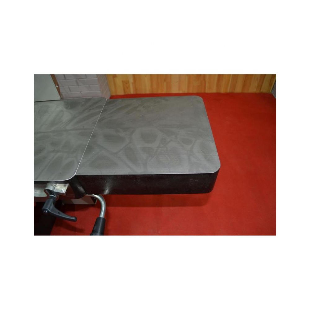 Два литих столу загальною довжиною 2360 мм і завширшки 410 мм з сірого чавуну з відшліфованою поверхнею сприяють легкому ковзанню заготовки, а також забезпечують стійкість і опір вібрації при роботі. Можливість регулювання обох столів дозволяють більш точно виставити.