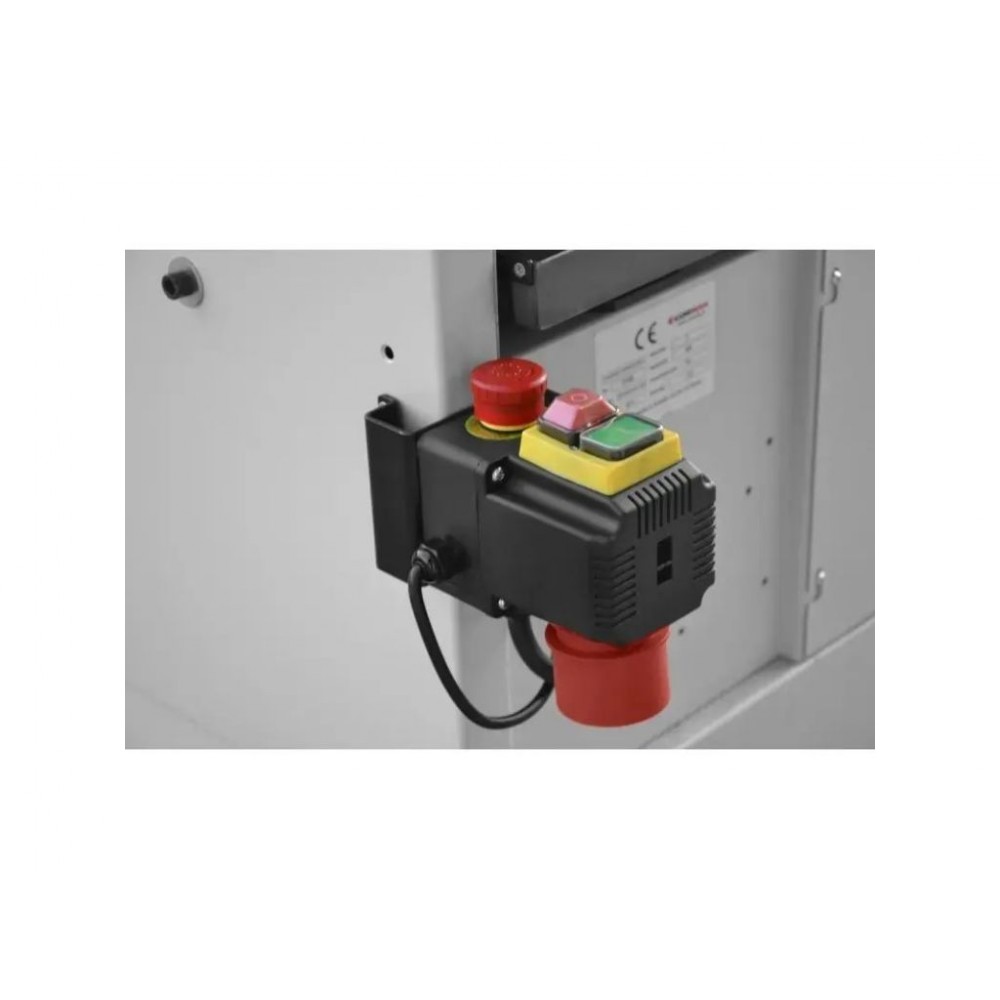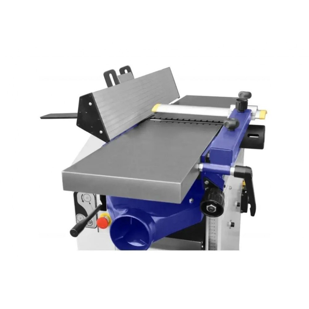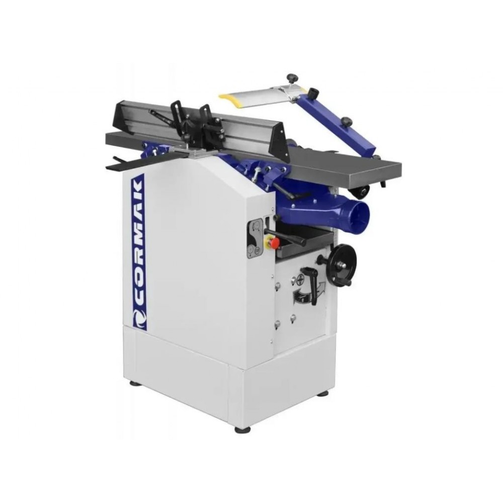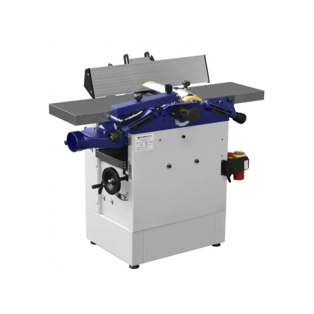 Фугувально-рейсмусовий верстат CORMAK PT260 400V з шириною обробки 250 мм, шліфованими чавунними столами та асинхронним трифазним двигуном потужністю 2 кВт/ 2,6 кВт буде вдалим вибором для невеликих професійних майстерень, які шукають багатофункціональне обладнання з якісною і точною роботою. Оснащений 3-ножовим стругальним валом діаметром 75 мм, який має швидкість обертання до 4000 об/хв. Максимальна глибина зняття за один прохід - 2,5 мм на фуганку і 3 мм на рейсмусі. Максимальна висота заготовки - 180 мм.