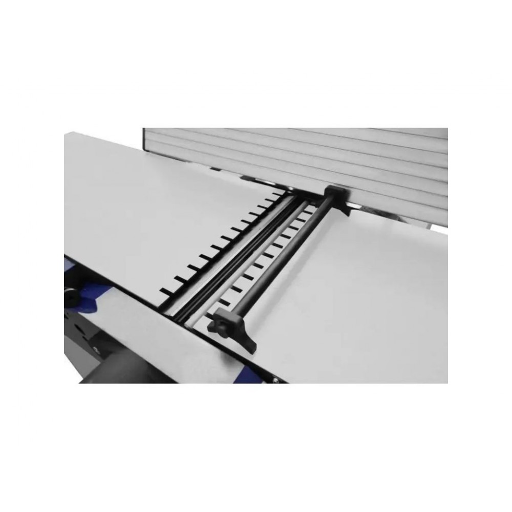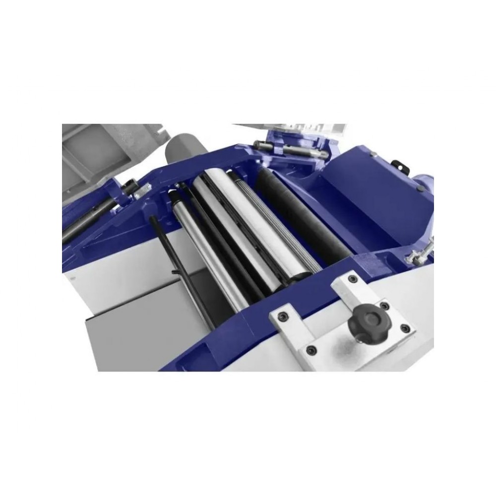 Довжина фугувальних столів 1100 мм забезпечує надійну підтримку заготовок, а шліфована, полірована поверхня столів - легке ковзання оброблюваних деталей. Завдяки жорсткій конструкції вагою 170 кг та антивібраційним гумовим ніжкам цей фуганок рейсмус 400 В гарантує точність і стабільність навіть при максимальному навантаженні.