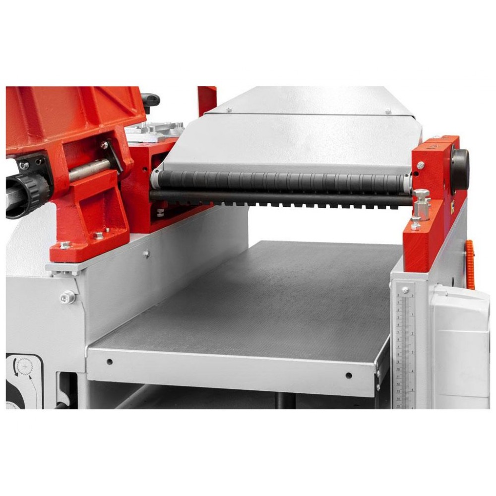 - Проста і швидка переналагодження для функції рейсмусовання - литі чавунні фугувальні столи відкидаються в сторони