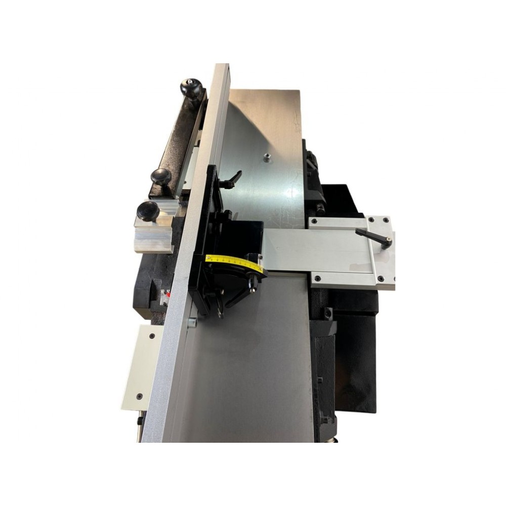 Стійка, міцна станина, чавунні столи і чітка шкала глибини забезпечують високу точність обробки. Стругальний вал оснащений 3 ножами і має великий діаметр, завдяки чому фугування відбувається з великою швидкістю. Перехід до рейсмуса здійснюється шляхом відкидання фугувального стола. Стіл для рейсмусування регулюється з обох боків і підтримується центральною колоною, що дає змогу досягти точного калібрування з двох сторін і працювати з важкими заготовками. Цей та інші комбіновані деревообробні верстати можна замовити на KMA.UA з доставкою по Україні.