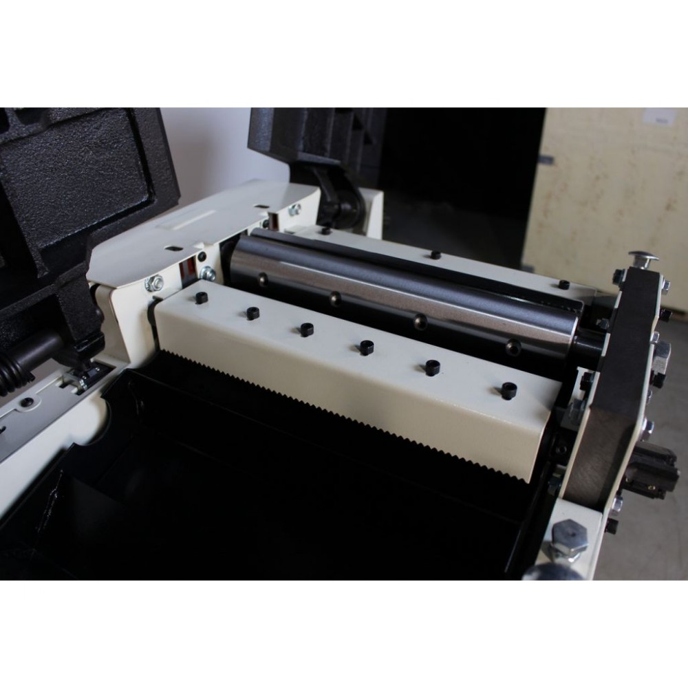 Стругальний вал діаметром 70 мм оснащений 3 високоякісними ножами і обертається зі швидкістю 4800 об/хв. Глибина стругання регулюється за допомогою маховика. Розширений стіл подачі дозволяє точно позиціонувати заготовку. Верстат комбінований деревообробний MAST Holztechnik H-FR310 доступний для замовлення на KMA.UA.
