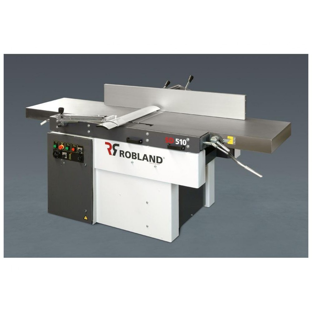 Фугувально-рейсмусовий верстат Robland SD 510 призначений для стругання заготовок в розмір по товщині, по пласті і крайці. Загальна довжина столів 2250 мм дозволяє обробити навіть довгі заготовки. У базовій комплектації верстат обладнаний потужністю 5 кВт. Верстат комплектується похилій лінійкою, захисним огородженням строгального валу, масивним чавунним столом. Опціонально верстат можна оснастити свердлильно-пазовальным пристроєм.