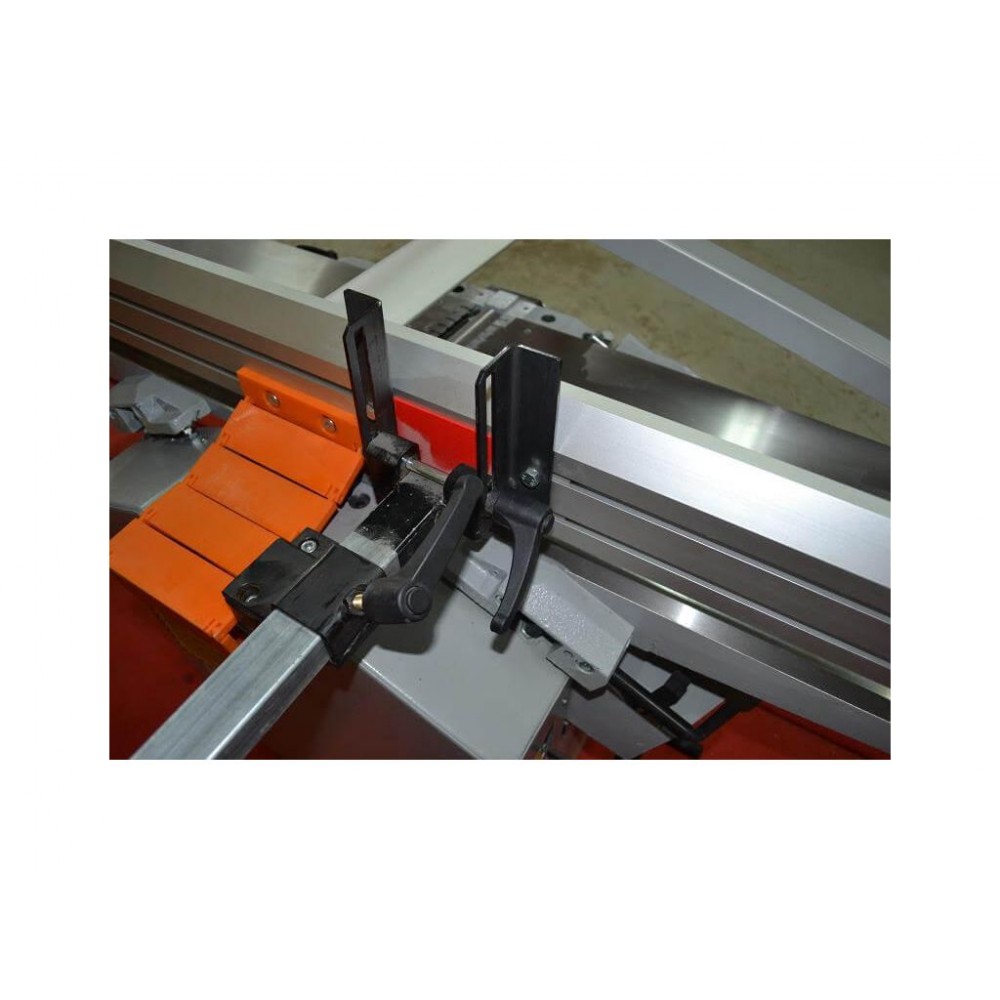 Паралельний упор розміром 1100 на 155 міліметрів виготовлений з анодованого алюмінію і закріплений на сталевий основі, що сприяє точному регулюванні під будь-яким кутом (90-45 градусів).