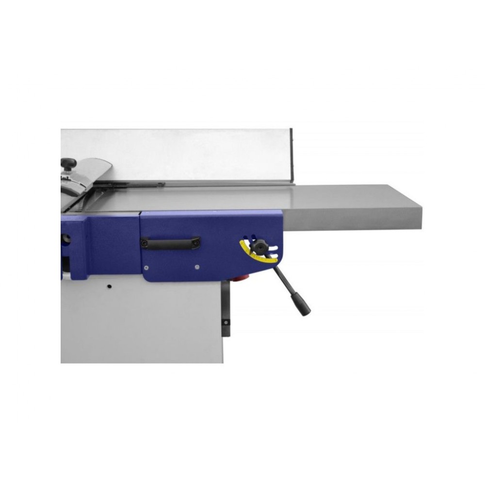 Чавунні столи зі шліфованою поверхнею забезпечують стабільність, площинність і легке ковзання заготовок, а центральна колона рейсмусового столу дозволяє точне регулювання без перекосів. Жорстка, масивна станина з литого чавуну робить цей комбінований фугувально-рейсмусовий верстат точним і надійним.