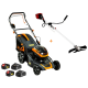 | Комплектація | інструкція з експлуатації, акумулятор 2 шт, Вставка для мульчування, дефлектор, Зарядний пристрій, Картонна упаковка, Набір інструментів, набір кріплень, травозбірник |